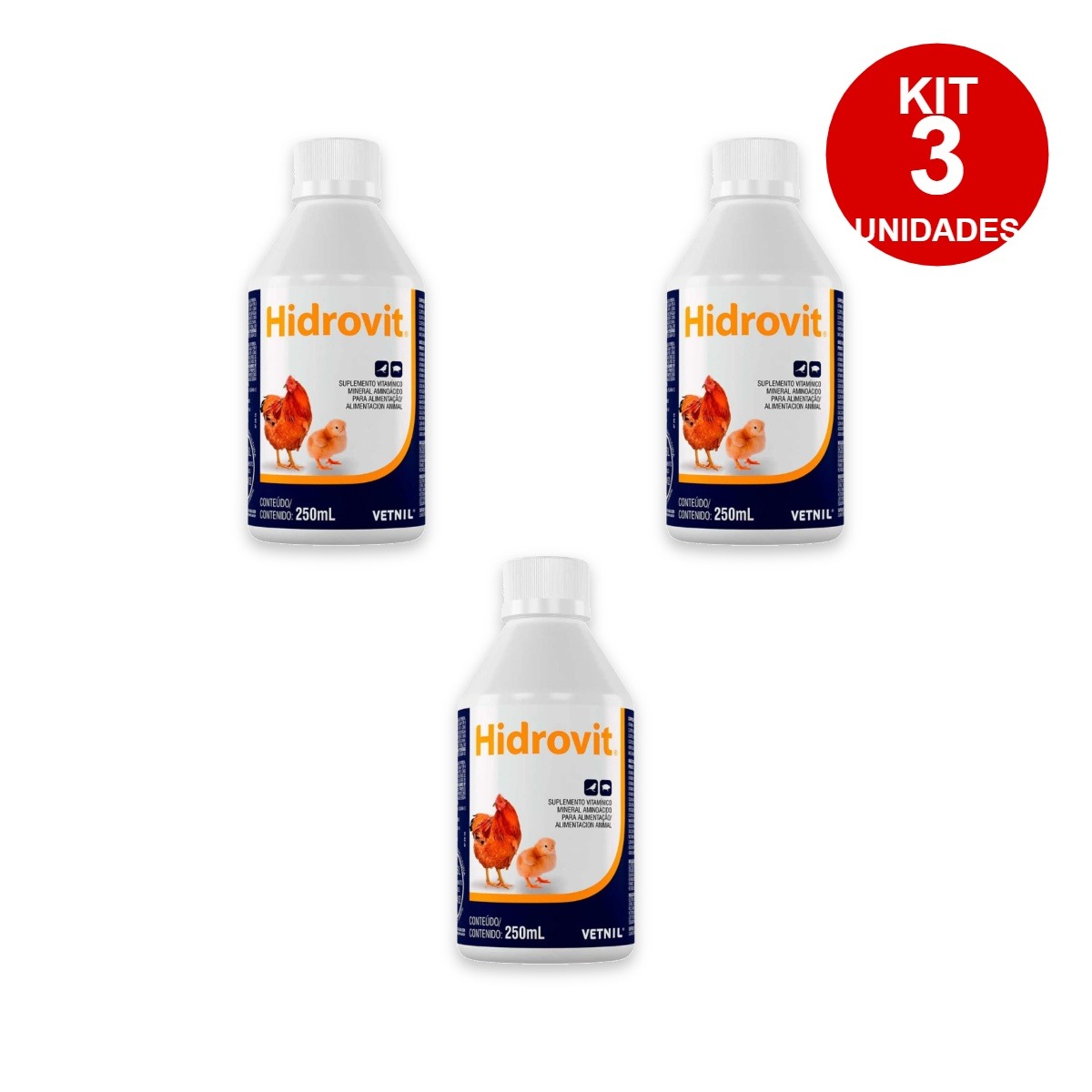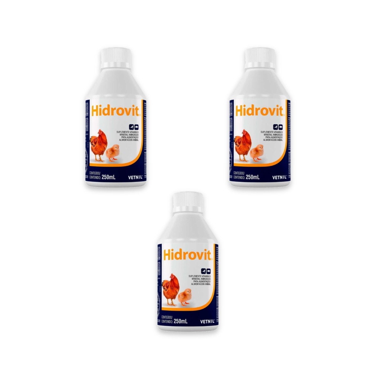 3 Unidades HIDROVIT 250ML – SUPLEMENTO VITAMÍNICO PARA AVES – VETNIL