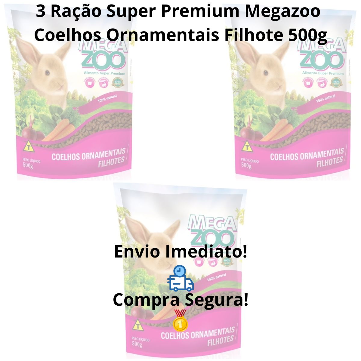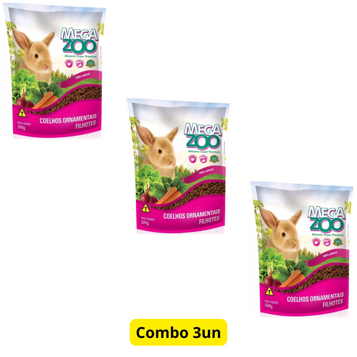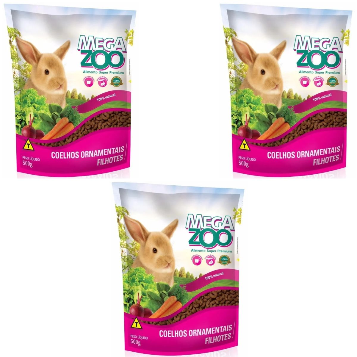 3 Unidades Ração Megazoo Coelho Filhote 500g – Crescimento Saudável