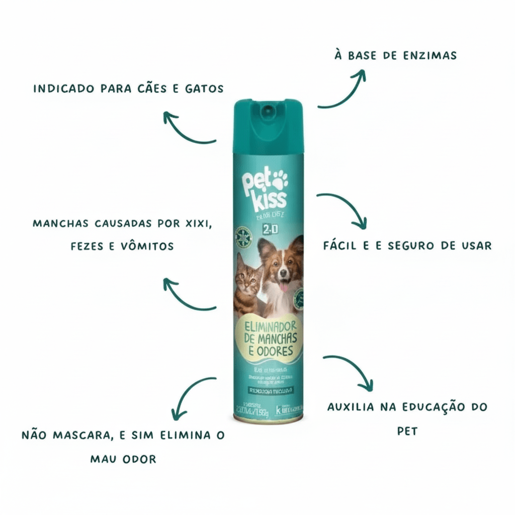 A maioria dos produtos de limpeza apenas mascara odores temporariamente. O Pet Kiss utiliza enzimas específicas que quebram as moléculas orgânicas presentes na urina, fezes e vômito dos animais, eliminando definitivamente a causa do mau cheiro.