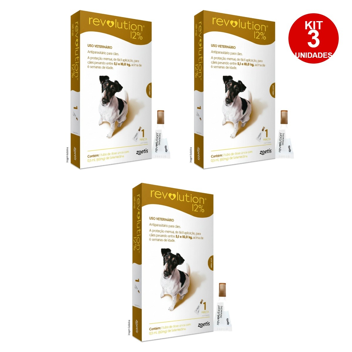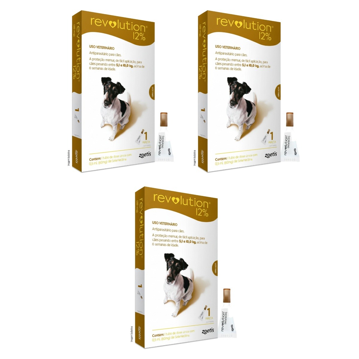 Kit 3 Antipulgas Revolution 12% Cães 5,1 a 10kg com 1 Pipeta – Grand Magasin