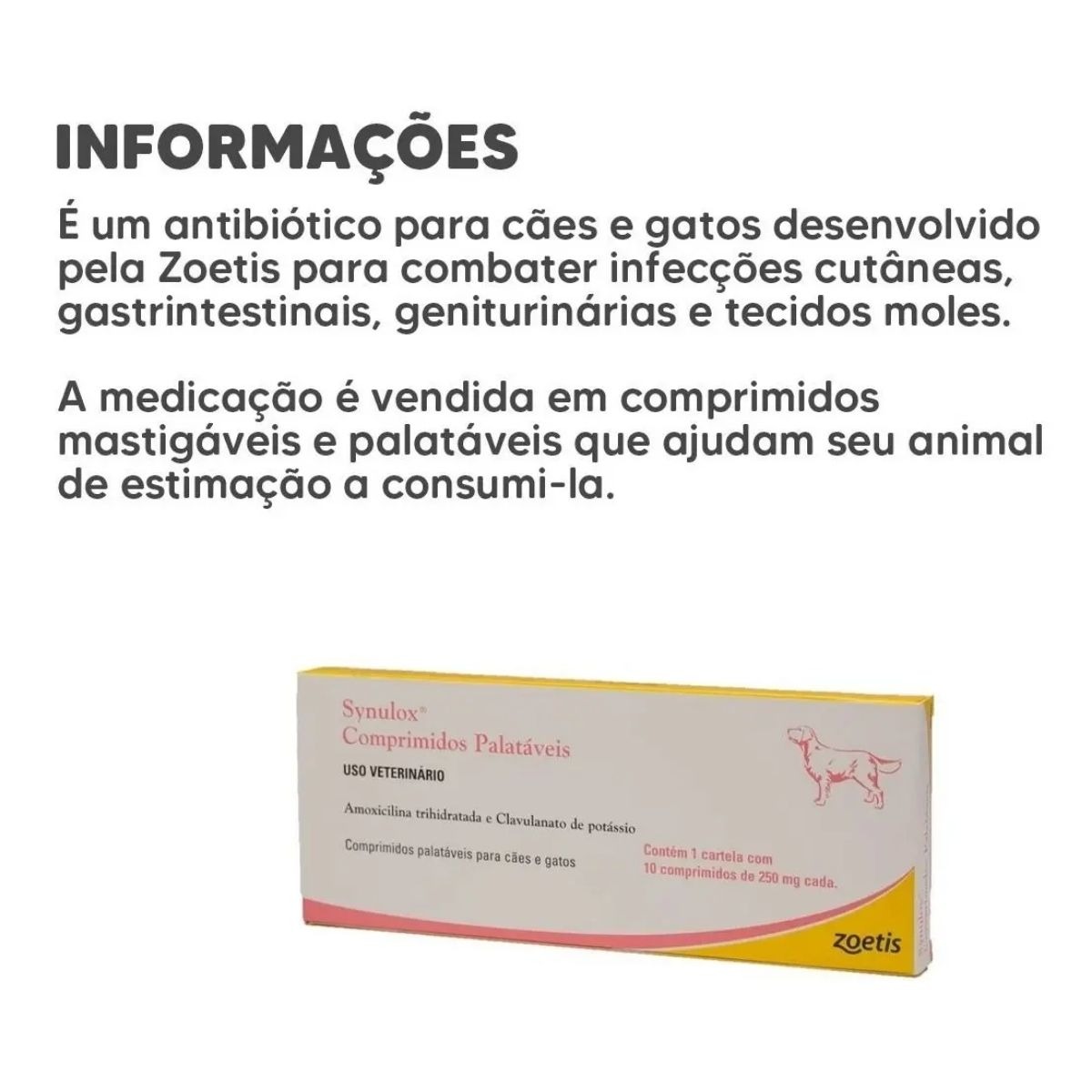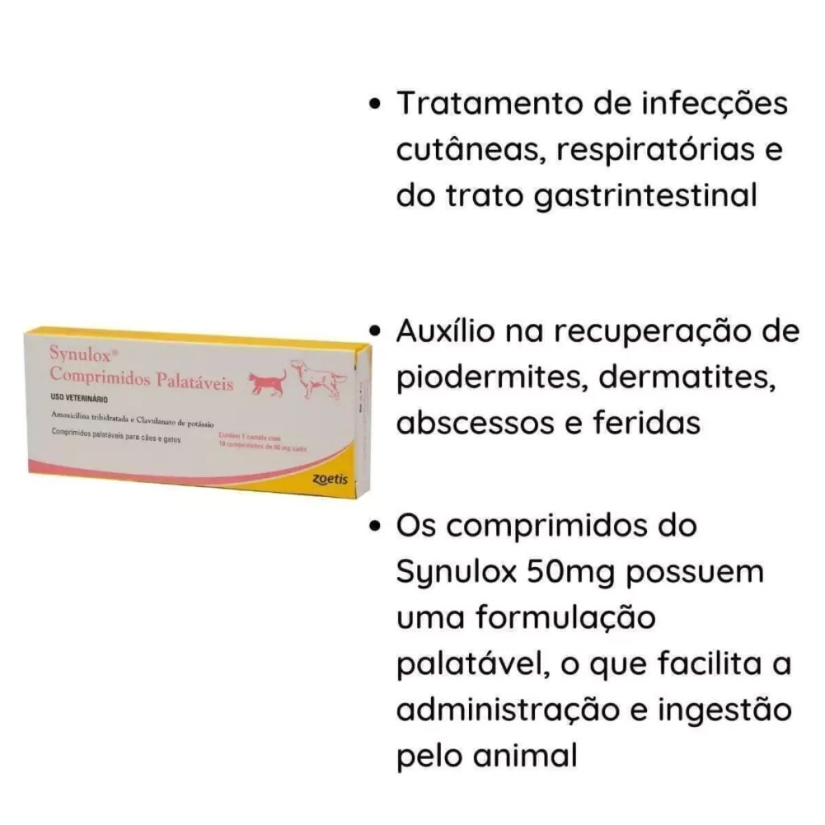 Com o Synulox, os tutores contam com um aliado de confiança para auxiliar na recuperação rápida e eficaz dos pets, sempre sob orientação do médico veterinário.