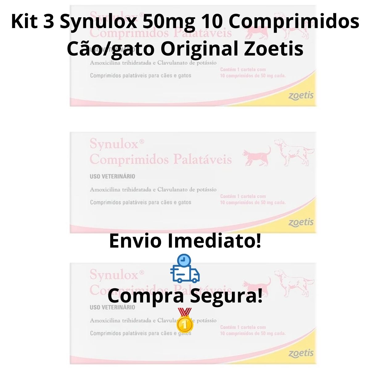 Grand Magasin Apresenta: Kit 3 unidades Synulox 50mg – Caixa Com 10 Comprimidos – Zoetis