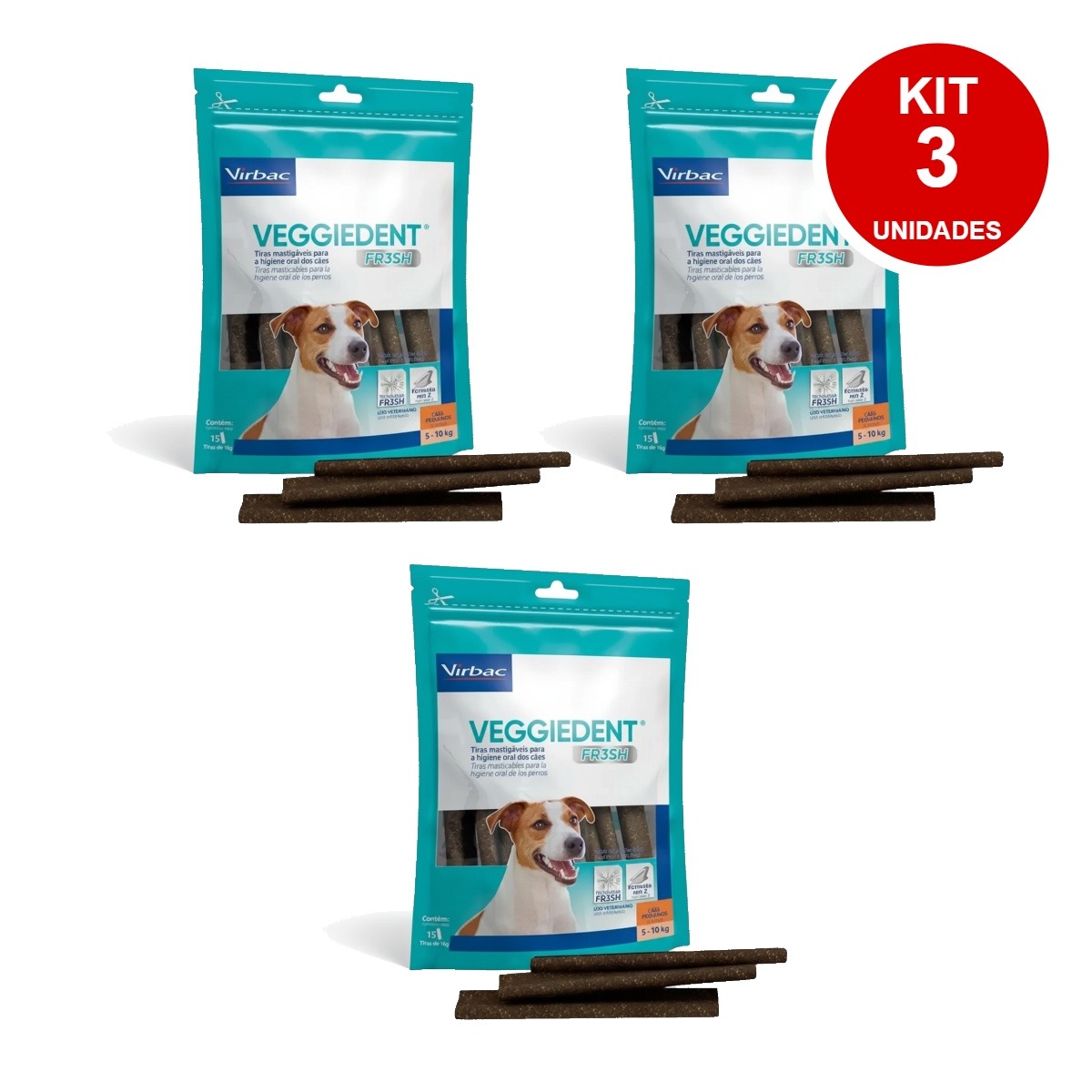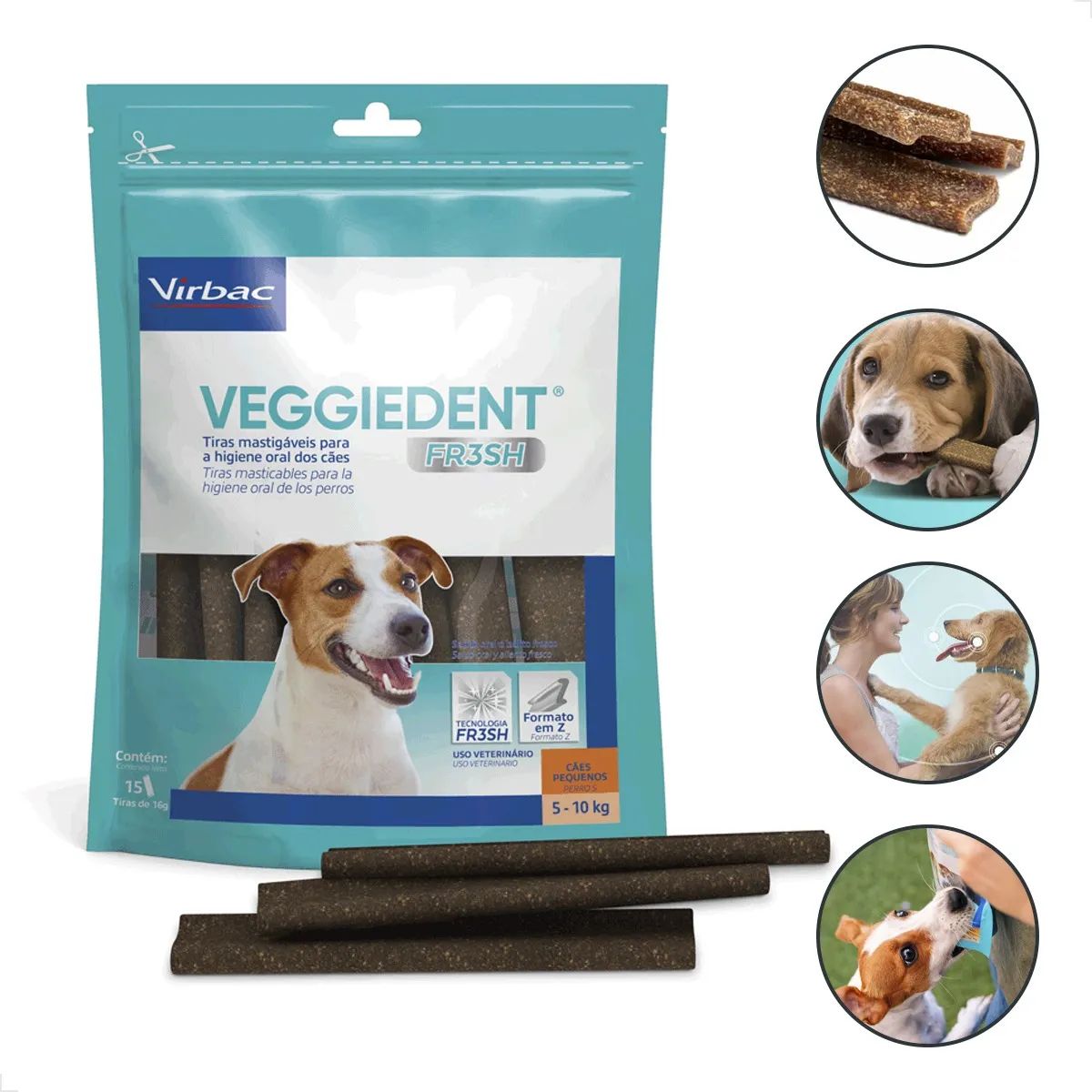 3 Unidades VEGGIEDENT FR3SH S – PACOTE COM 15 TIRAS MASTIGÁVEIS PARA HIGIENE ORAL DE CÃES PEQUENOS (5 A 10KG) – VIRBAC