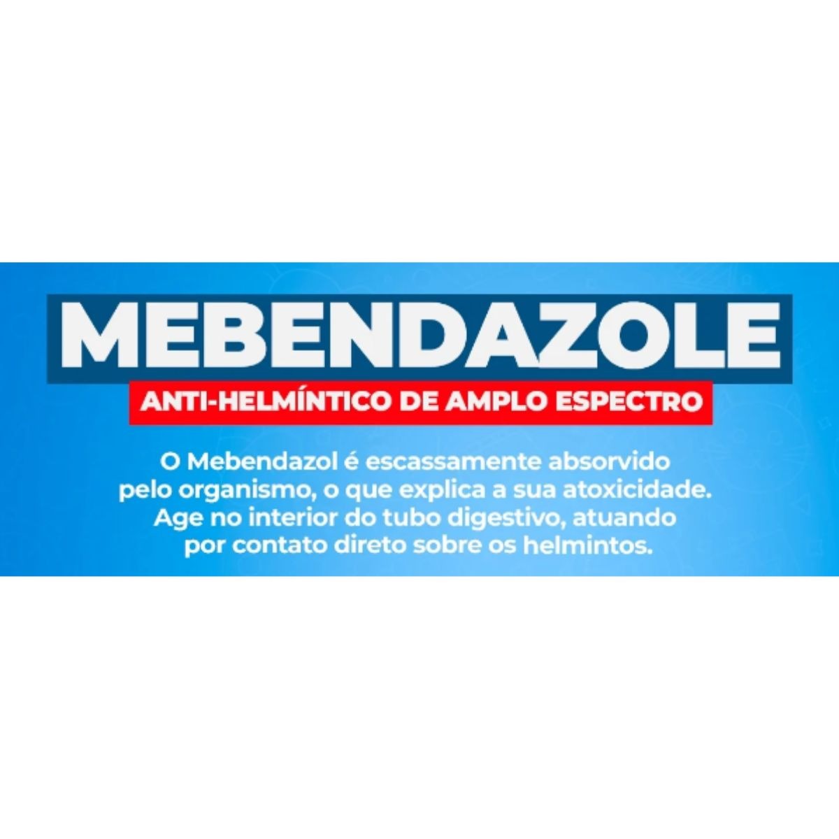 • Princípio ativo Mebendazole – eficaz contra vermes redondos e chatos
