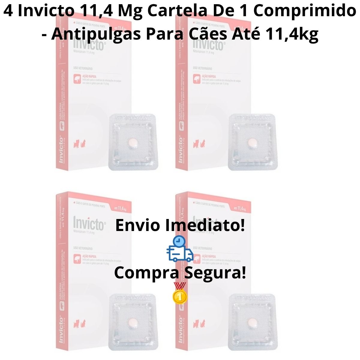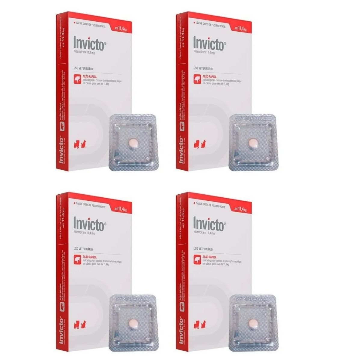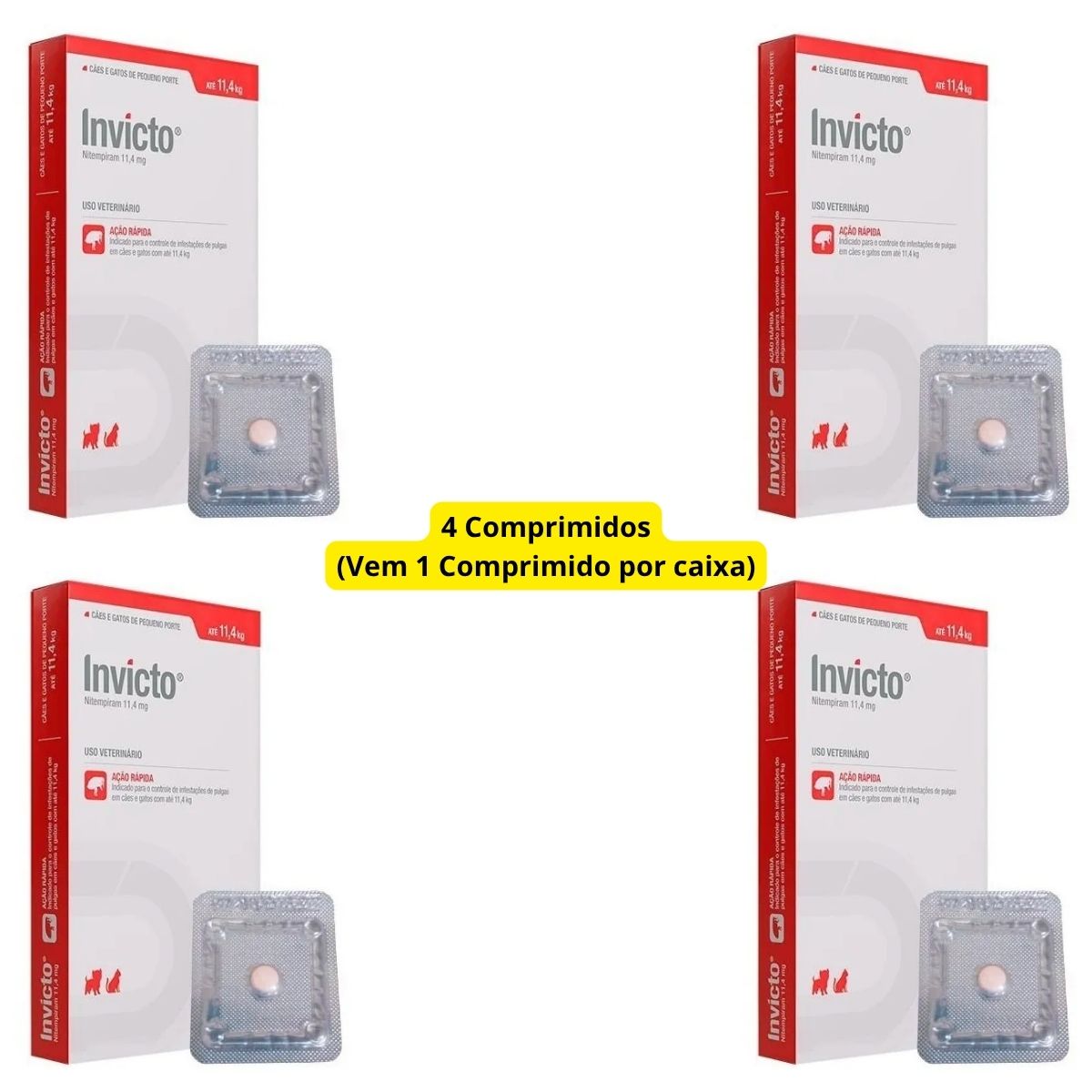 Administre 1 comprimido por via oral, conforme o peso do animal. A dosagem é de 1mg por quilograma de peso corporal. Para animais até 11,4kg, utilize 1 comprimido de Invicto 11,4mg.
