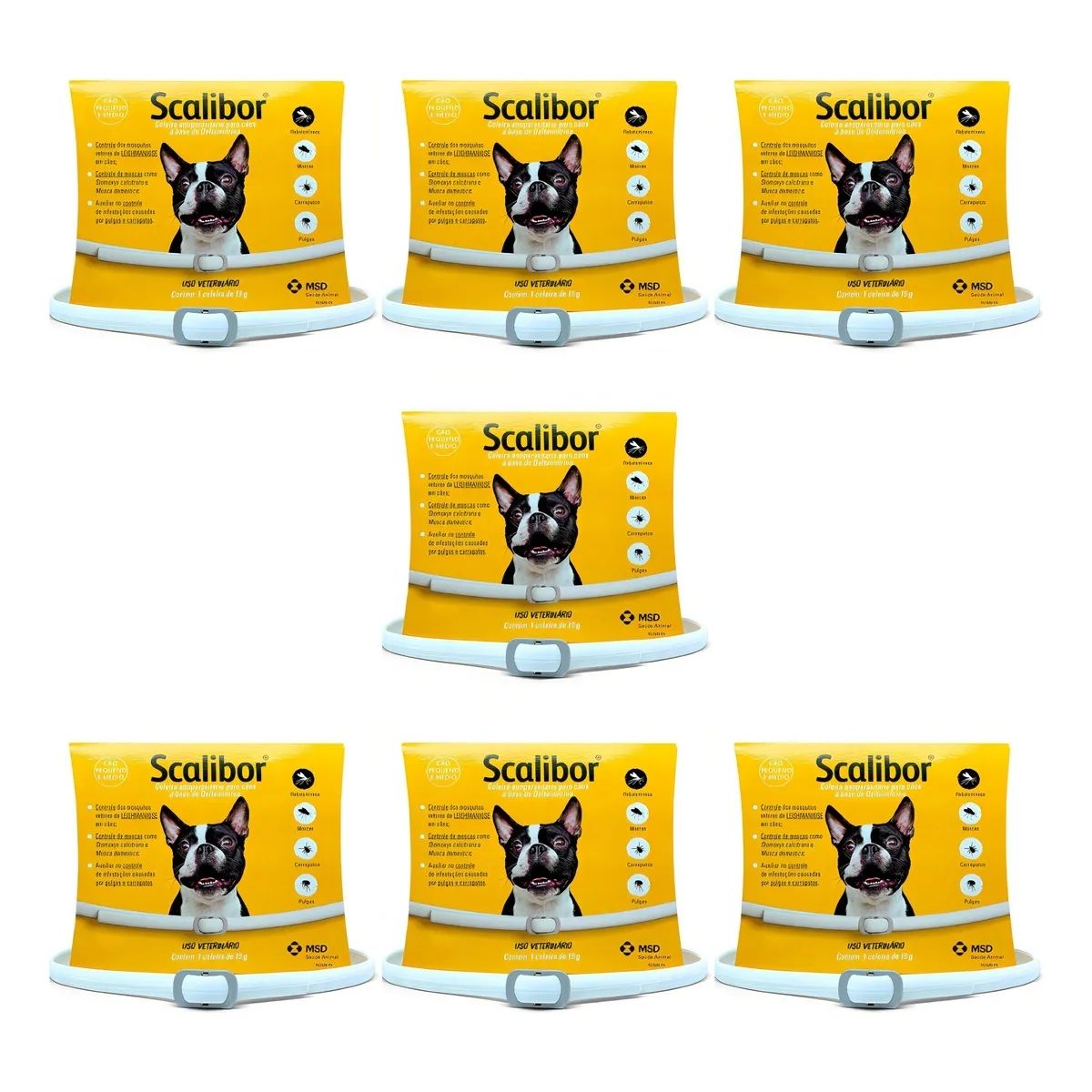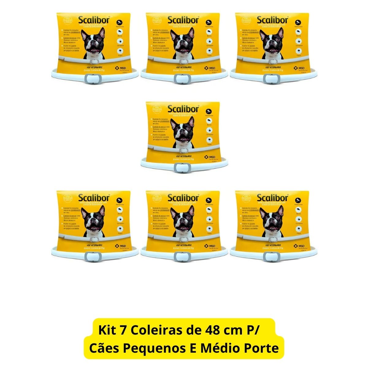 Kit 7un Scalibor Coleira Para Cães Pequenos e Médios 48cm