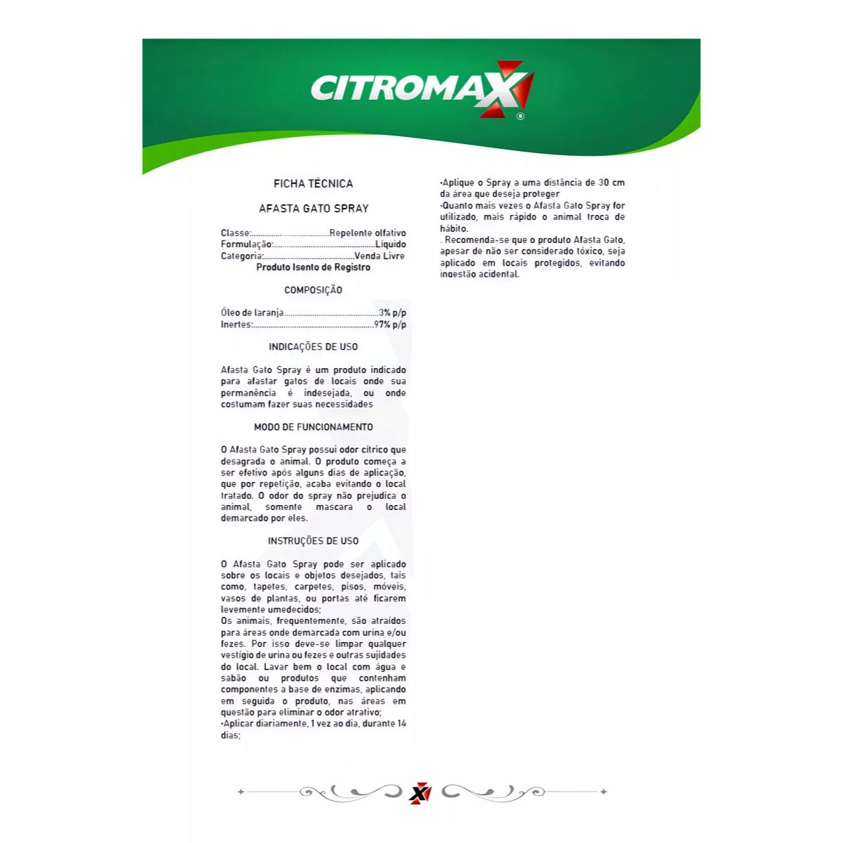 O spray libera um odor cítrico que desagrada os gatos, incentivando-os a evitar o local.