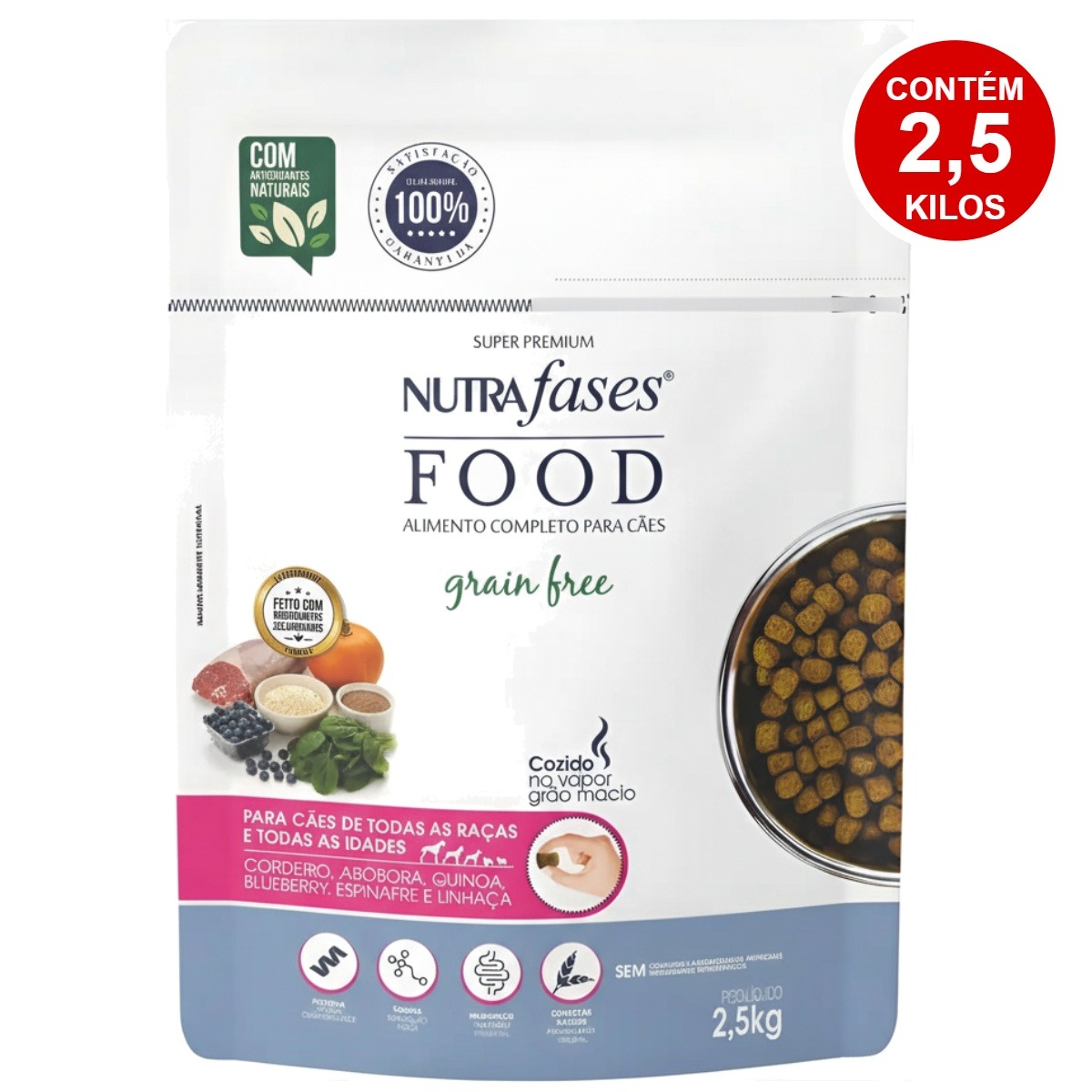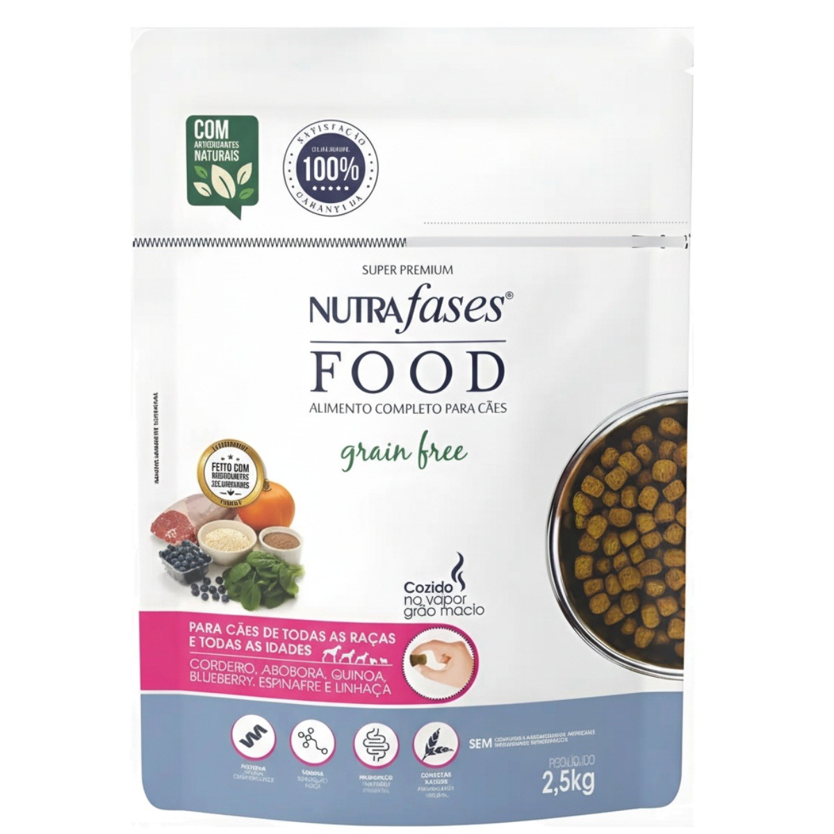 NUTRAFASES FOOD – RAÇÃO COZIDA NO VAPOR GRAIN FREE CORDEIRO 2,5KG