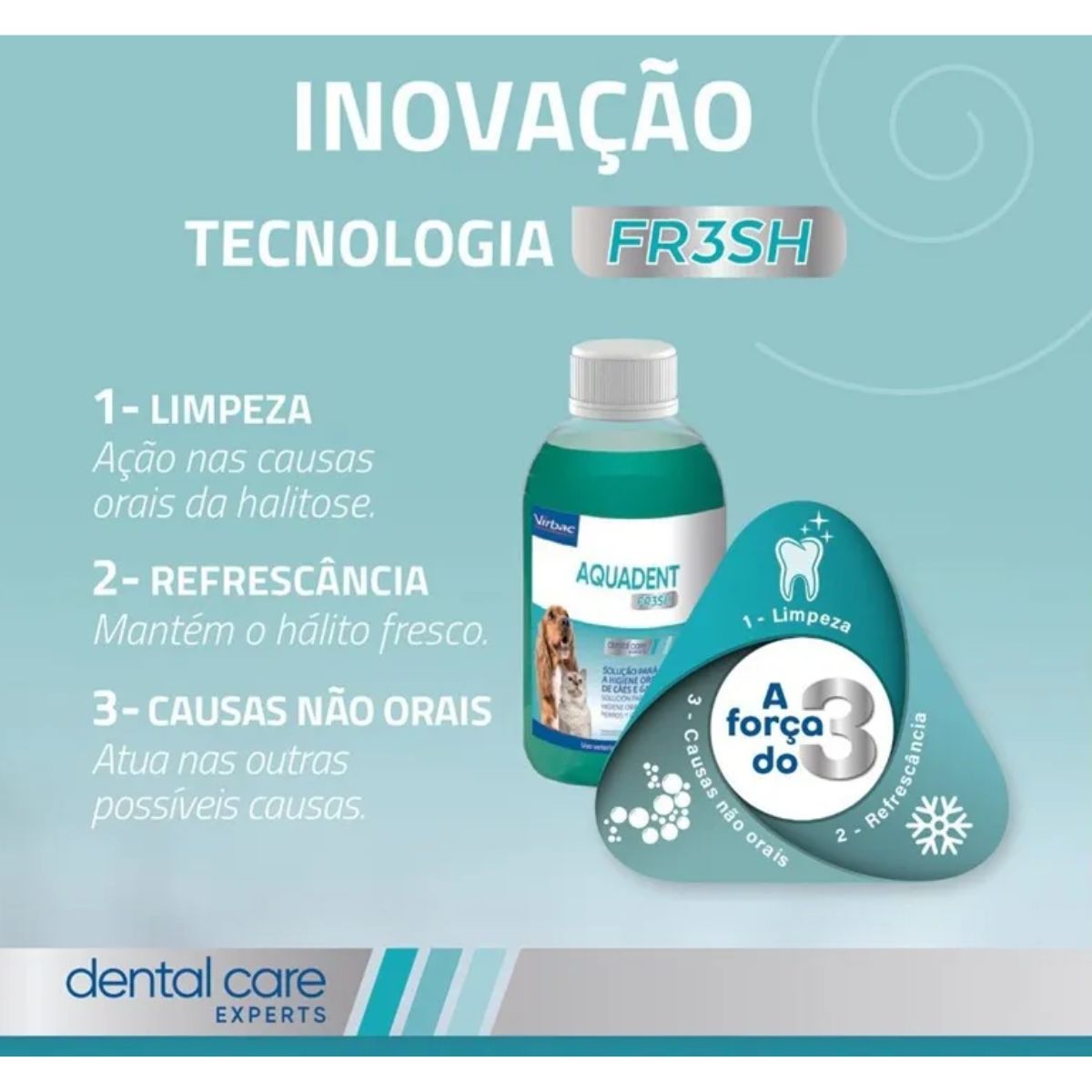 A saúde bucal do seu pet vai muito além do hálito agradável. Problemas dentários não tratados podem causar dor, dificuldade para comer e até comprometer órgãos vitais como coração e rins. O Aquadent Fresh da Virbac oferece uma solução prática e eficiente para manter a higiene oral do seu companheiro em dia.