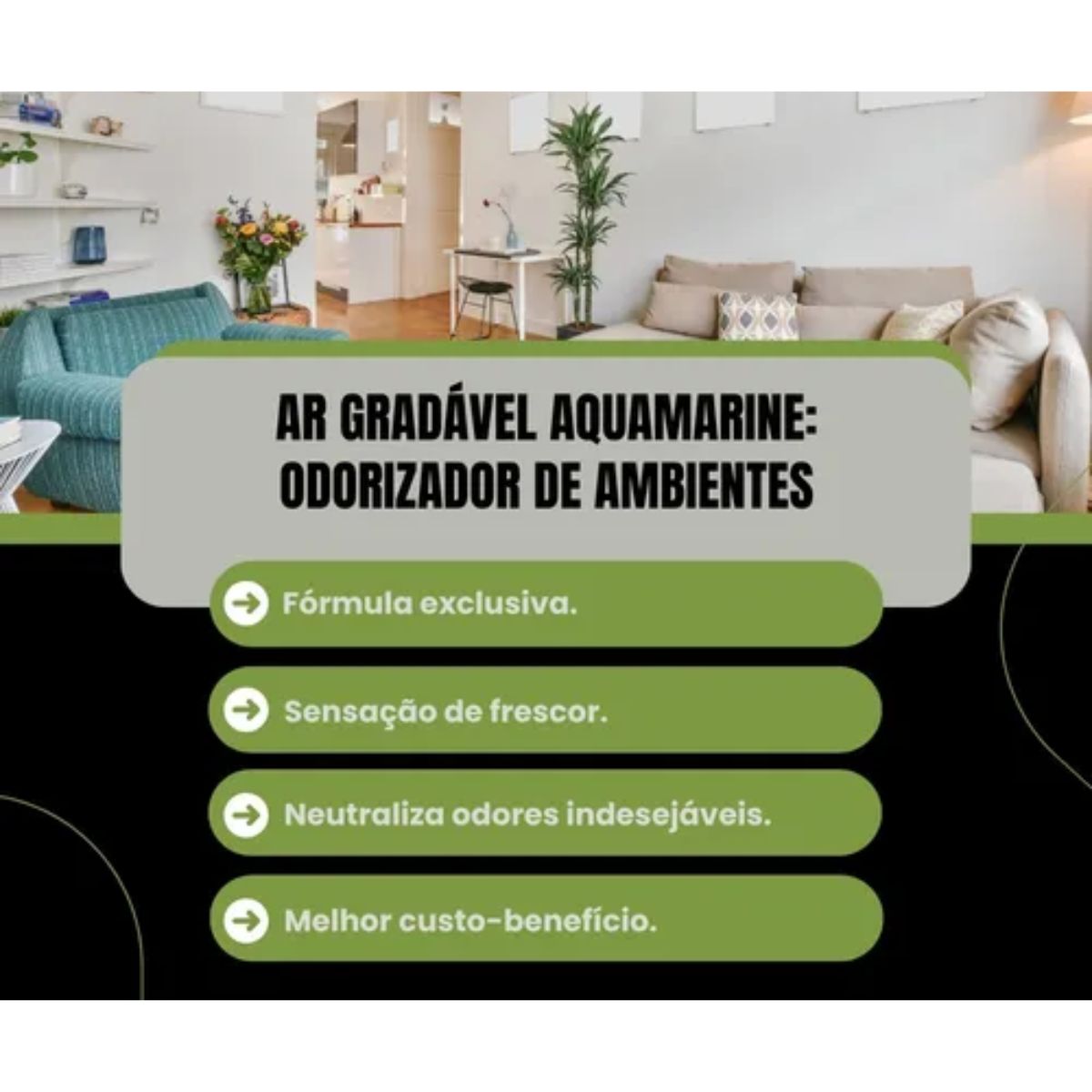 Neutraliza odores rapidamente: A tecnologia de neutralização age diretamente nos maus odores, tornando o ambiente mais agradável e convidativo.