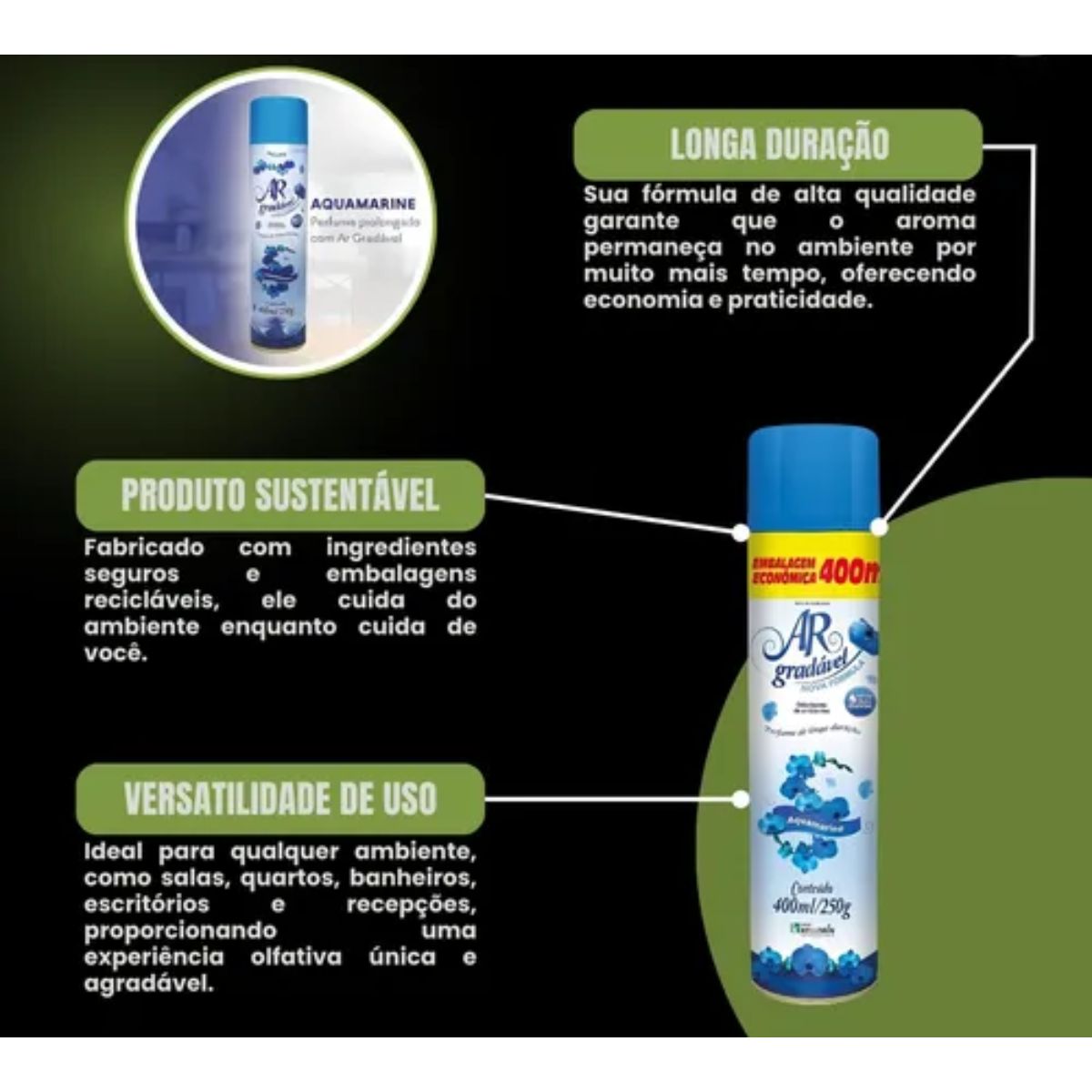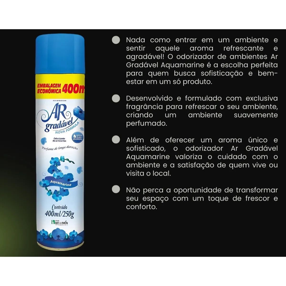 Transforme seus ambientes com o Bom Ar Neutralizador de Ambientes Aquamarine da Kelldrin – 400 ml