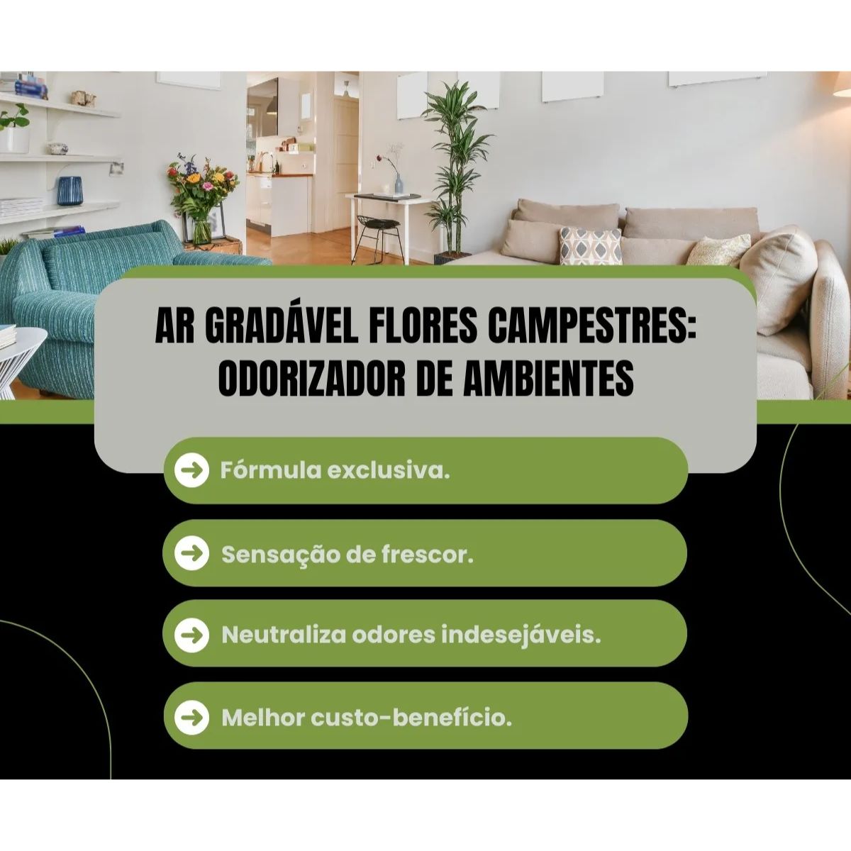 Neutraliza odores rapidamente: A tecnologia de neutralização age diretamente nos maus odores, tornando o ambiente mais agradável e convidativo.