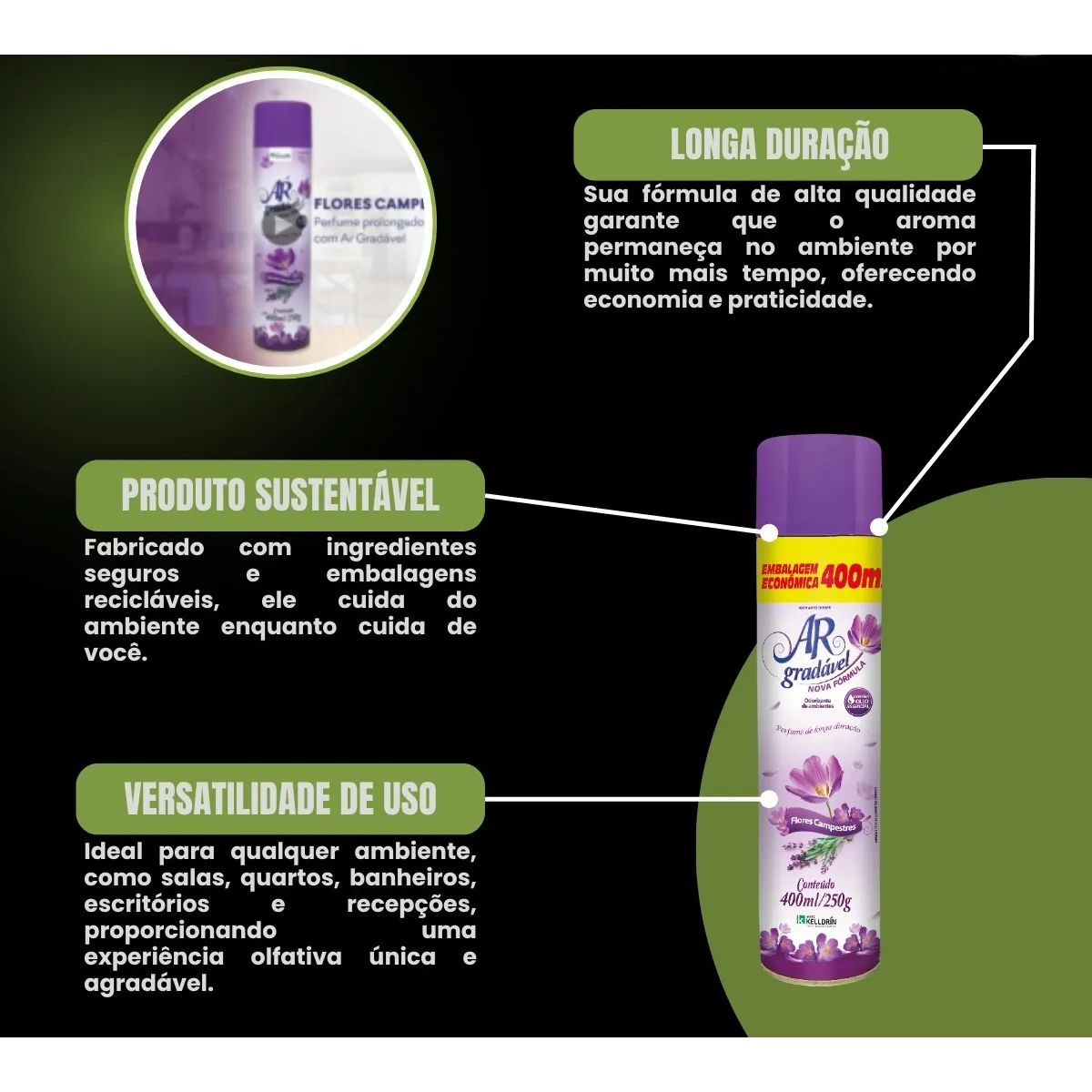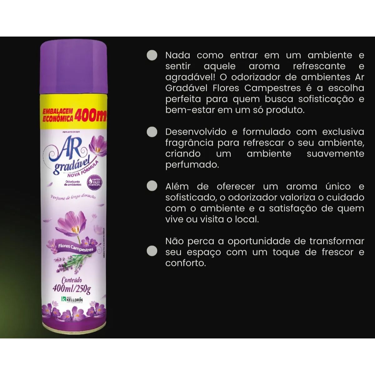 Transforme seus ambientes com o Bom Ar Neutralizador de Ambientes Flores Campestre da Kelldrin – 400 ml