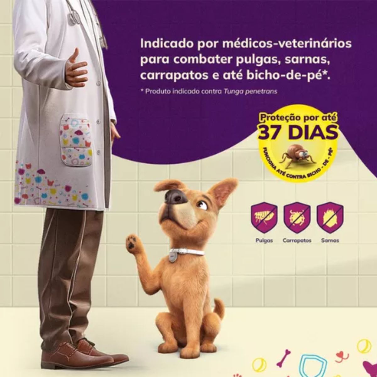 Com eficácia garantida por até 37 dias, ele elimina os parasitas antes que possam se reproduzir, garantindo uma proteção contínua e segura.