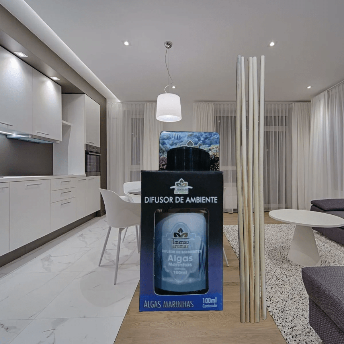O Aromatizante de Ambiente Imenso Aroma de Algas Marinhas é a escolha ideal para quem deseja criar um ambiente acolhedor e perfumado com um toque de elegância e frescor.