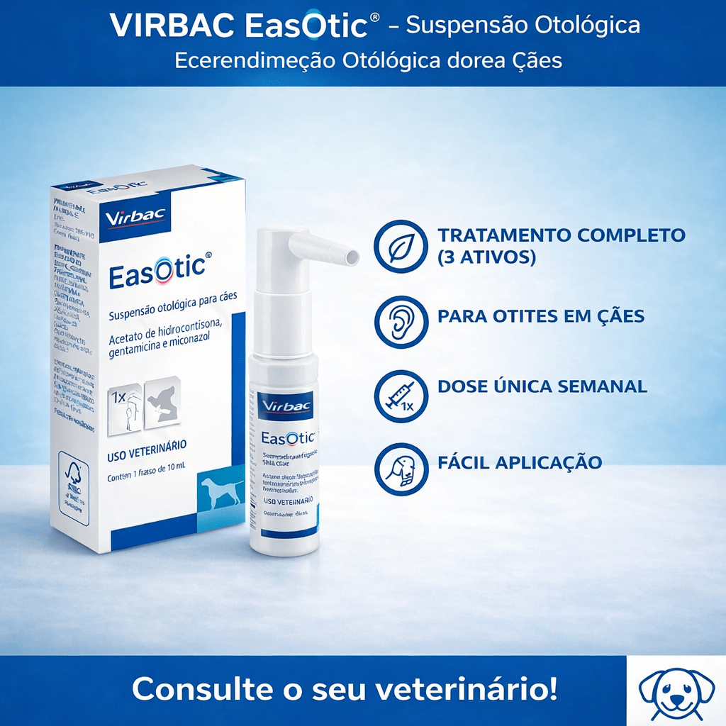 Precisa de receita? Sim. Easotic é um medicamento veterinário que requer prescrição profissional para uso correto e seguro.