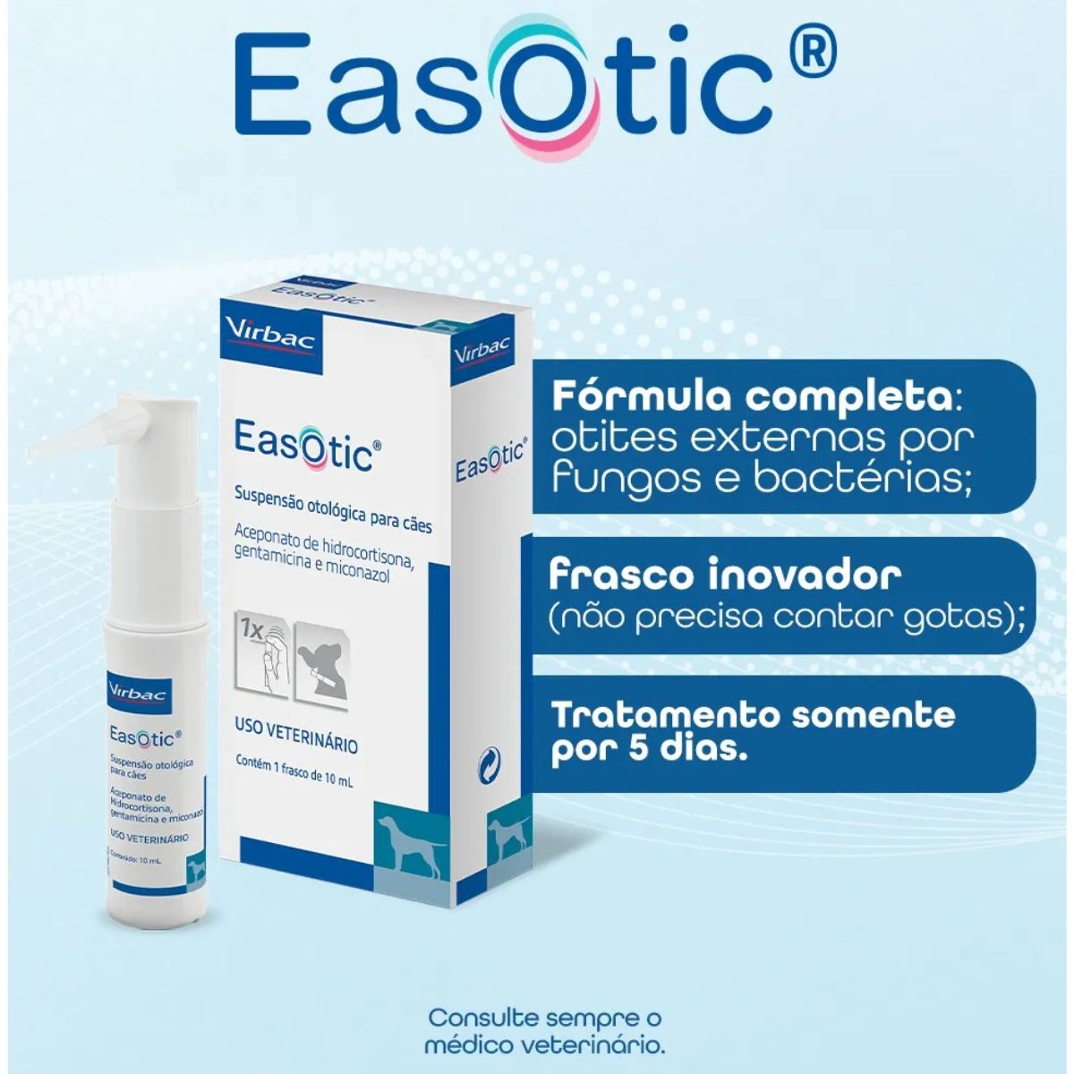 EASOTIC 10ML + BRINDE CATA CACA – SUSPENSÃO OTOLÓGICA PARA CÃES – VIRBAC