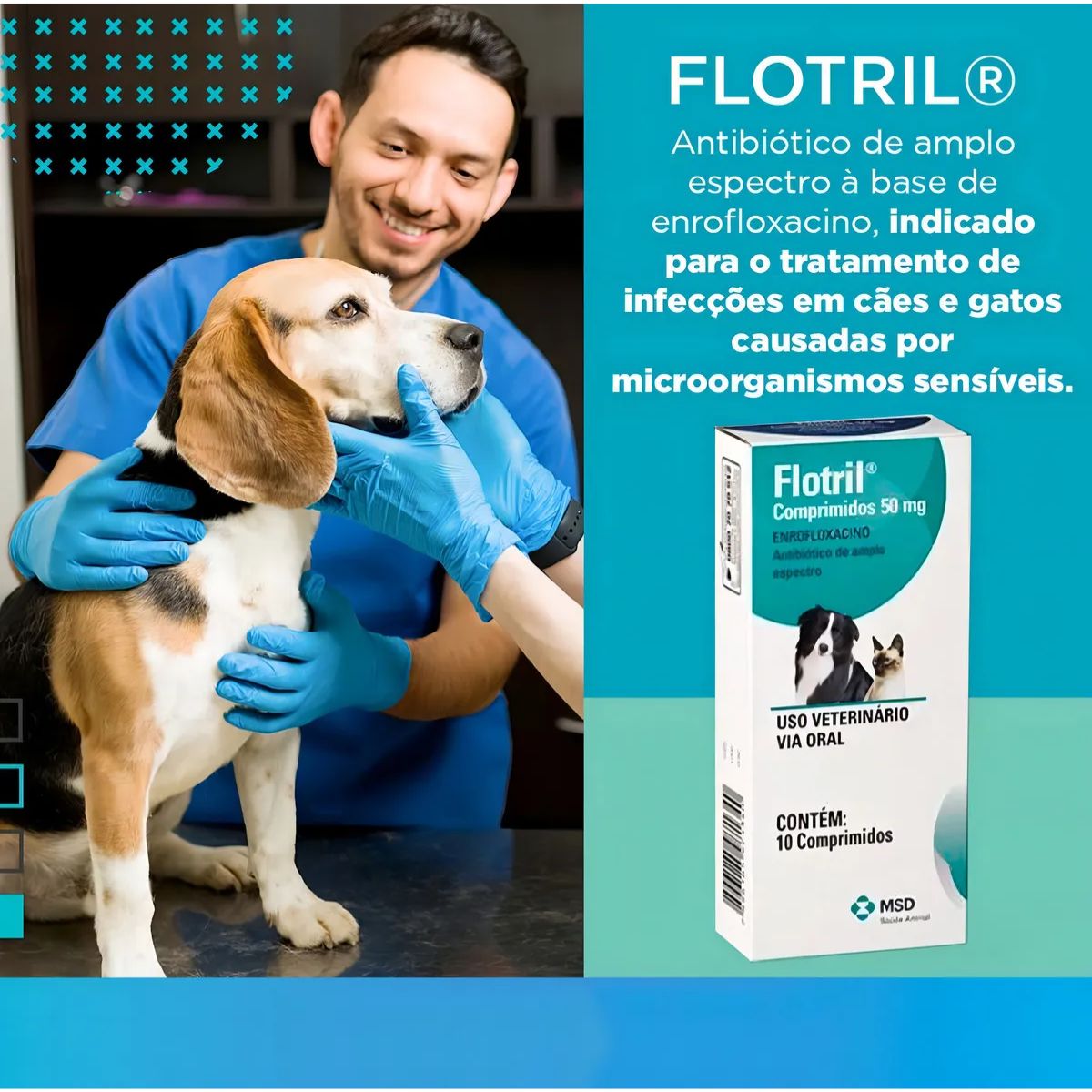 FLOTRIL MSD é o antibiótico de referência desenvolvido pela MSD Saúde Animal, uma das maiores e mais respeitadas empresas farmacêuticas veterinárias do mundo. Com princípio ativo Enrofloxacino, este medicamento oferece amplo espectro de ação contra infecções bacterianas em cães e gatos.