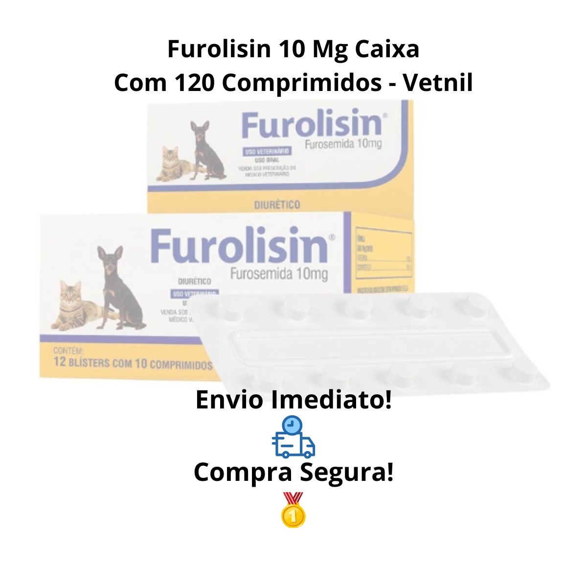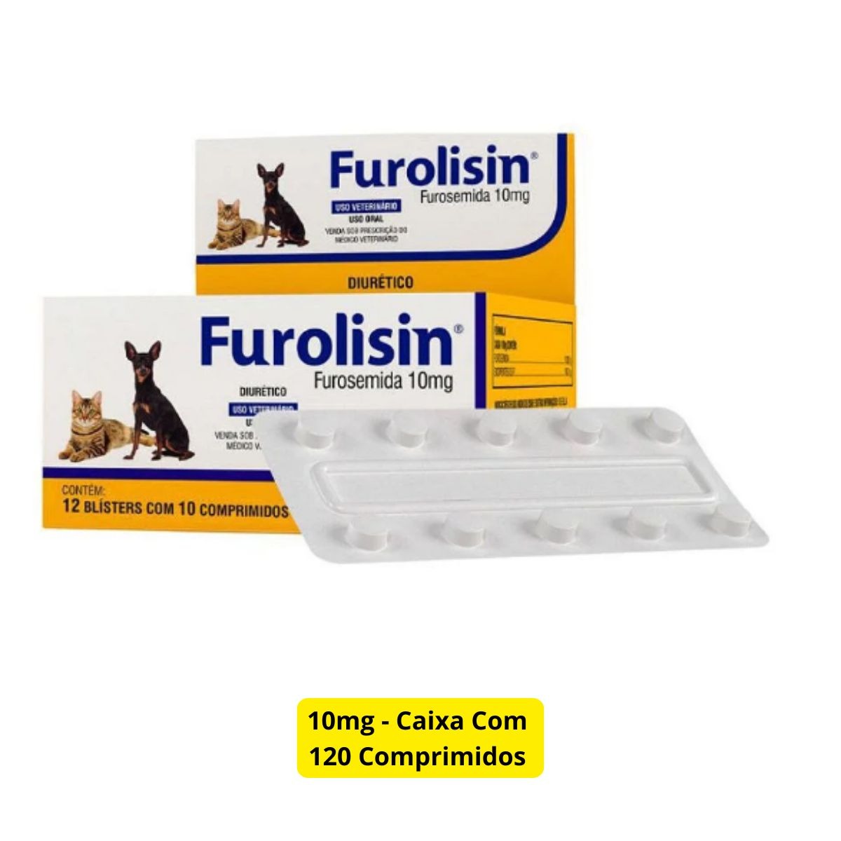 1 Caixa FUROLISIN 10MG – DIURETICO PARA CAES E GATOS – VETNIL Com 120 Comprimidos