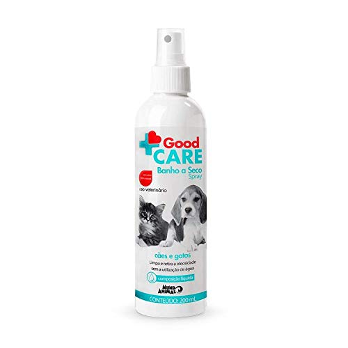 Banho a Seco Spray Mundo Animal Good Care para Cães e Gatos indicado para uma higienização sem a utilização de água , capaz de limpar e retirar a oleosidade, com rápida secagem. Incorpora ativo natural que proporciona maciez e sedosidade a pelagem sem agredi-la, sendo isento de corantes. Possui o ativo natural e inovador Deoplex ® Clear, que garante a neutralização completa dos odores naturais dos animais.