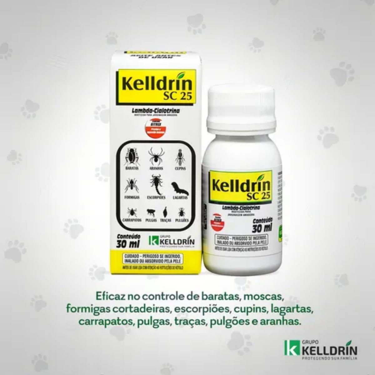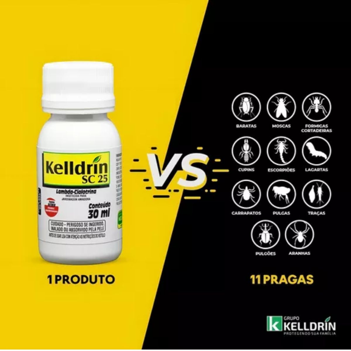 Ação Abrangente: Kelldrin SC 25 atua efetivamente contra uma ampla gama de pragas, incluindo baratas, aranhas, escorpiões e outros insetos rastejantes.