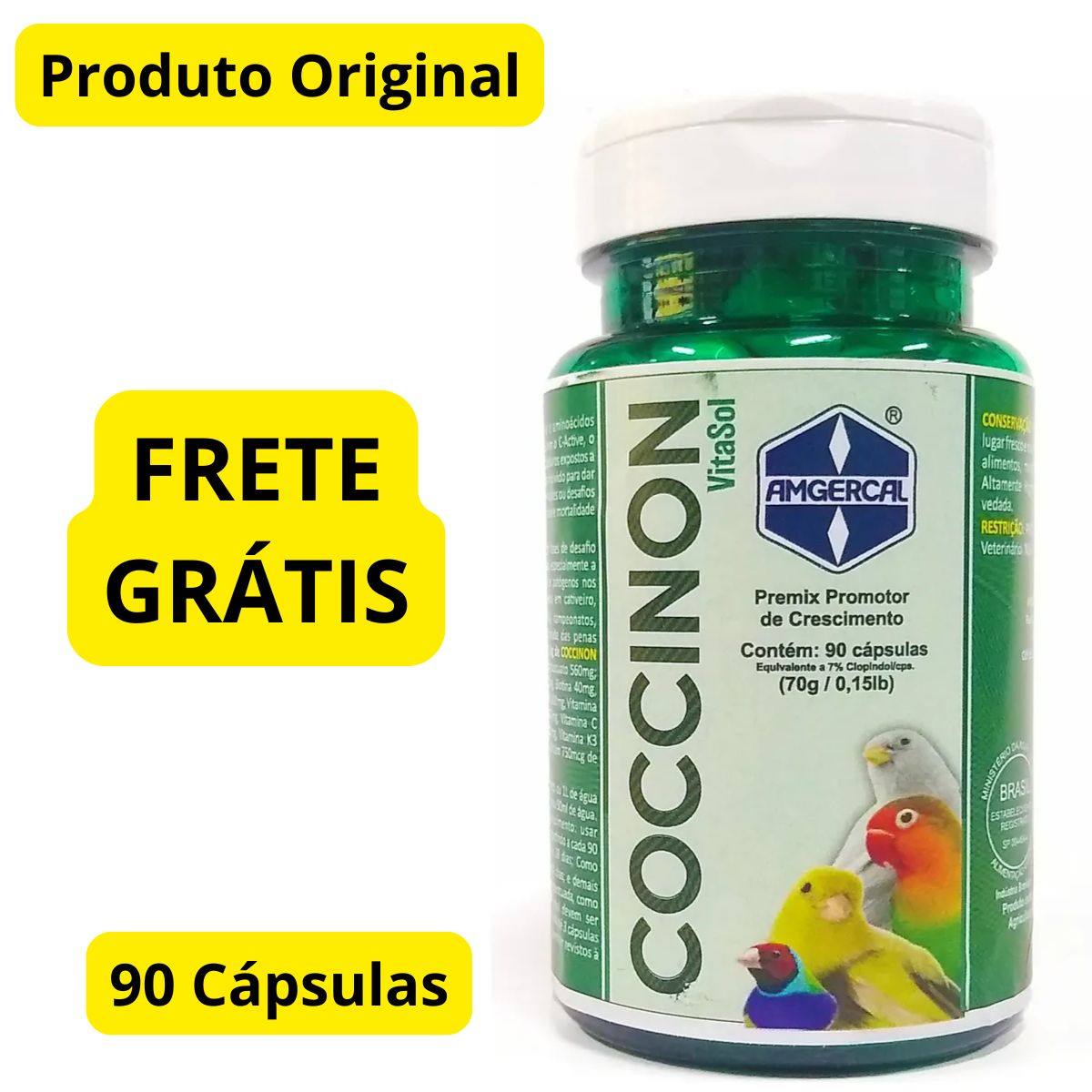 Apresentamos o Coccinon 90 Cápsulas 70g da Amgercal, um premix coccidiostático de alta qualidade, especialmente desenvolvido para pássaros exóticos e pássaros silvestres. Este produto é formulado com ingredientes de primeira linha, garantindo a saúde e o bem-estar das suas aves. As cápsulas são fáceis de administrar e foram projetadas para serem facilmente digeridas pelas aves, garantindo uma absorção eficaz dos nutrientes. O Coccinon 90 Cápsulas ajuda a prevenir a coccidiose, uma doença comum em aves que pode levar a problemas de saúde graves se não for tratada. Com este produto, você pode ter certeza de que está fornecendo o melhor cuidado possível para suas aves.