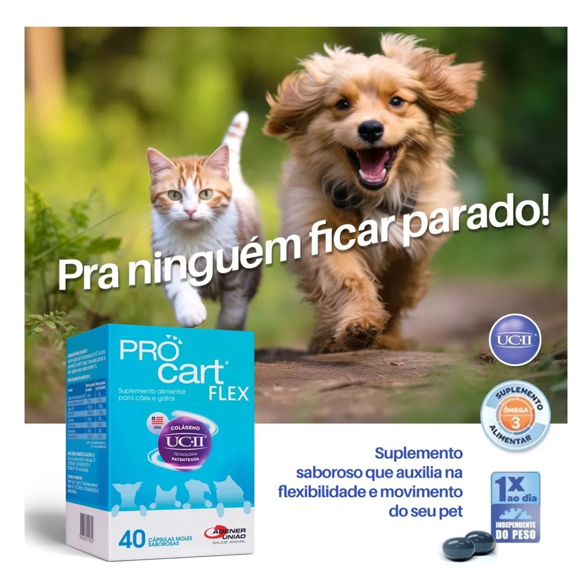 Procart® Flex é a escolha ideal para tutores que desejam oferecer mais conforto, mobilidade e qualidade de vida aos seus pets.