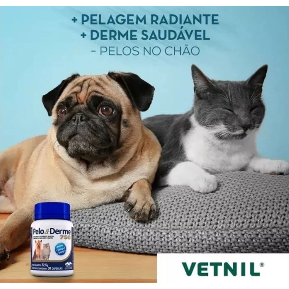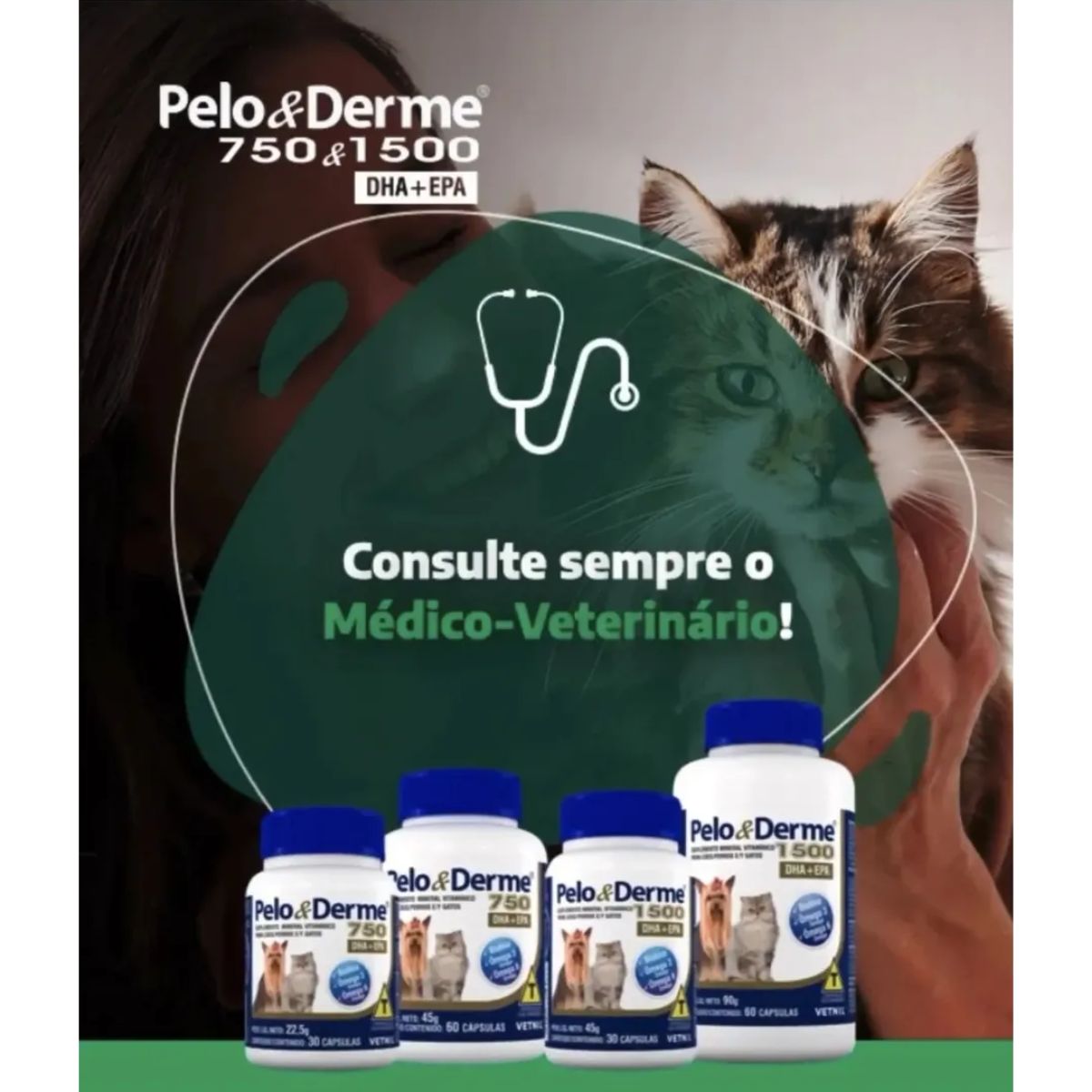 O Pelo e Derme 1500 é uma fórmula que contém ácidos graxos essenciais à dieta de cães e gatos, associados à Biotina, Zinco, Vitamina A e Vitamina E, elementos que, quando em conjunto, atuam mantendo ideais as características da pelagem e da pele.