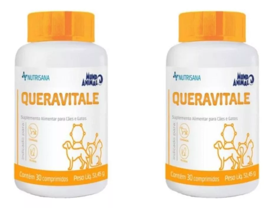 Suplemento vitamínico e mineral para a pele e a pelagem, indicado para cães e gatos. O suplemento Nutrisana Queravitale apresenta uma formulação balanceada que dá suporte nutricional a animais com queda de pelo devido à falta de nutrientes.