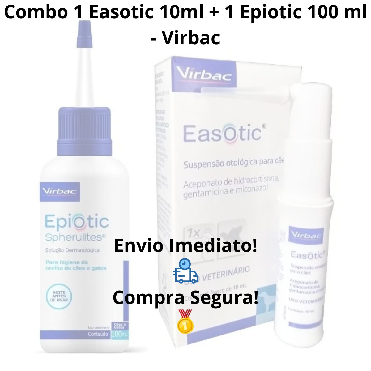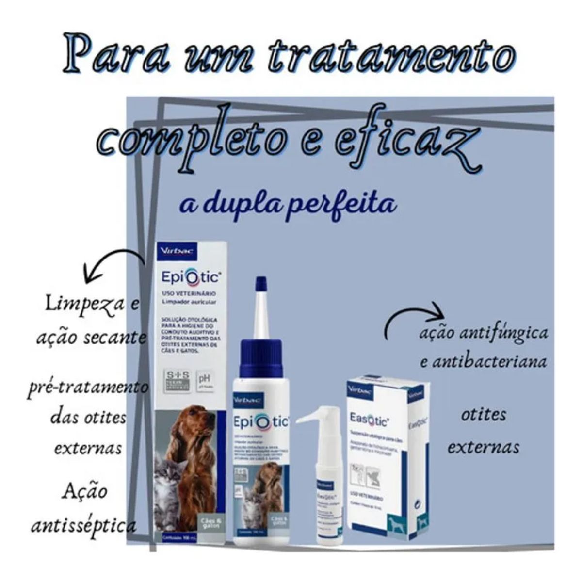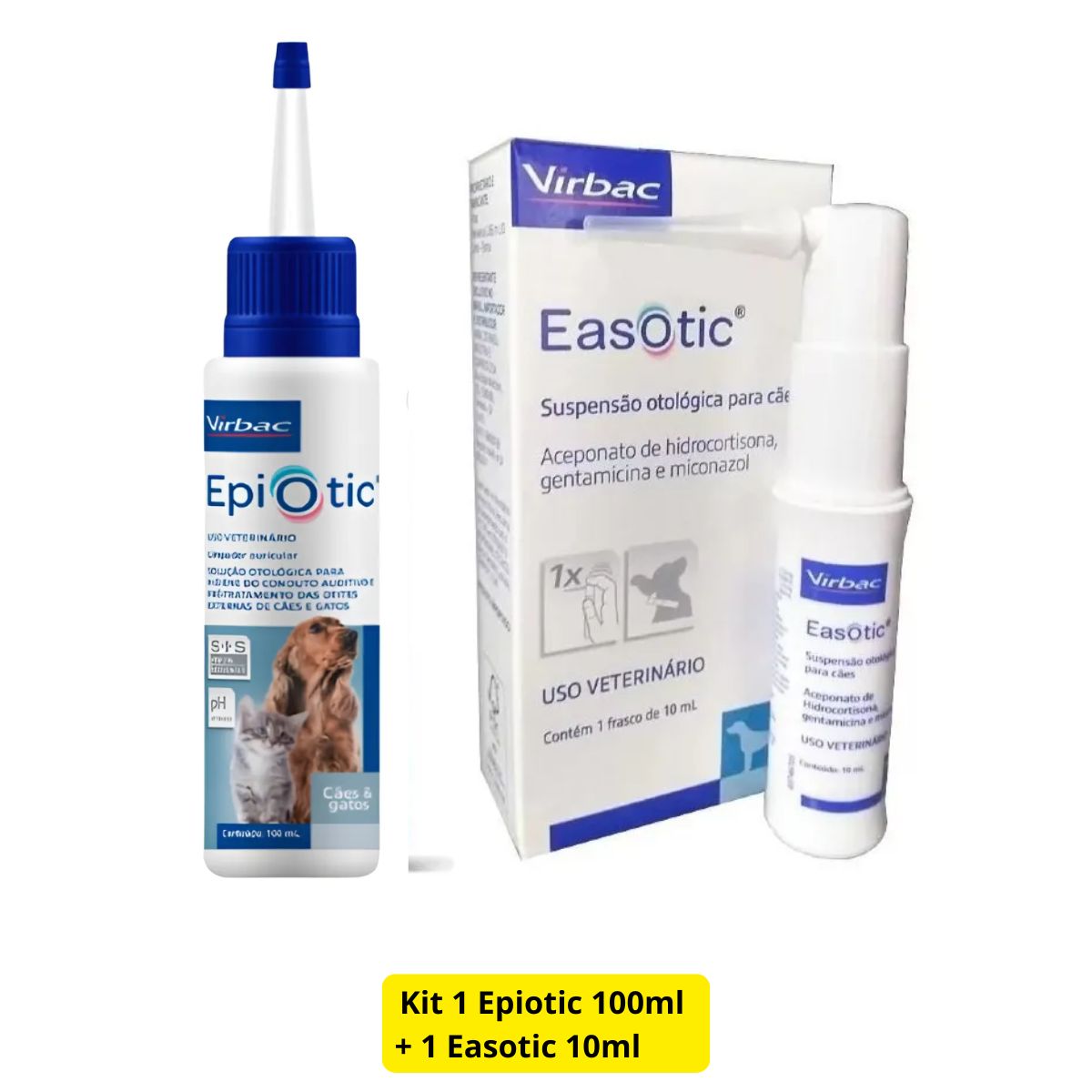 Grand Magasin apresenta: Epiotic Solução Otológica 100ml Limpador Auricular + Easotic 10ml Suspensão Otológica Para Cães – Virbac