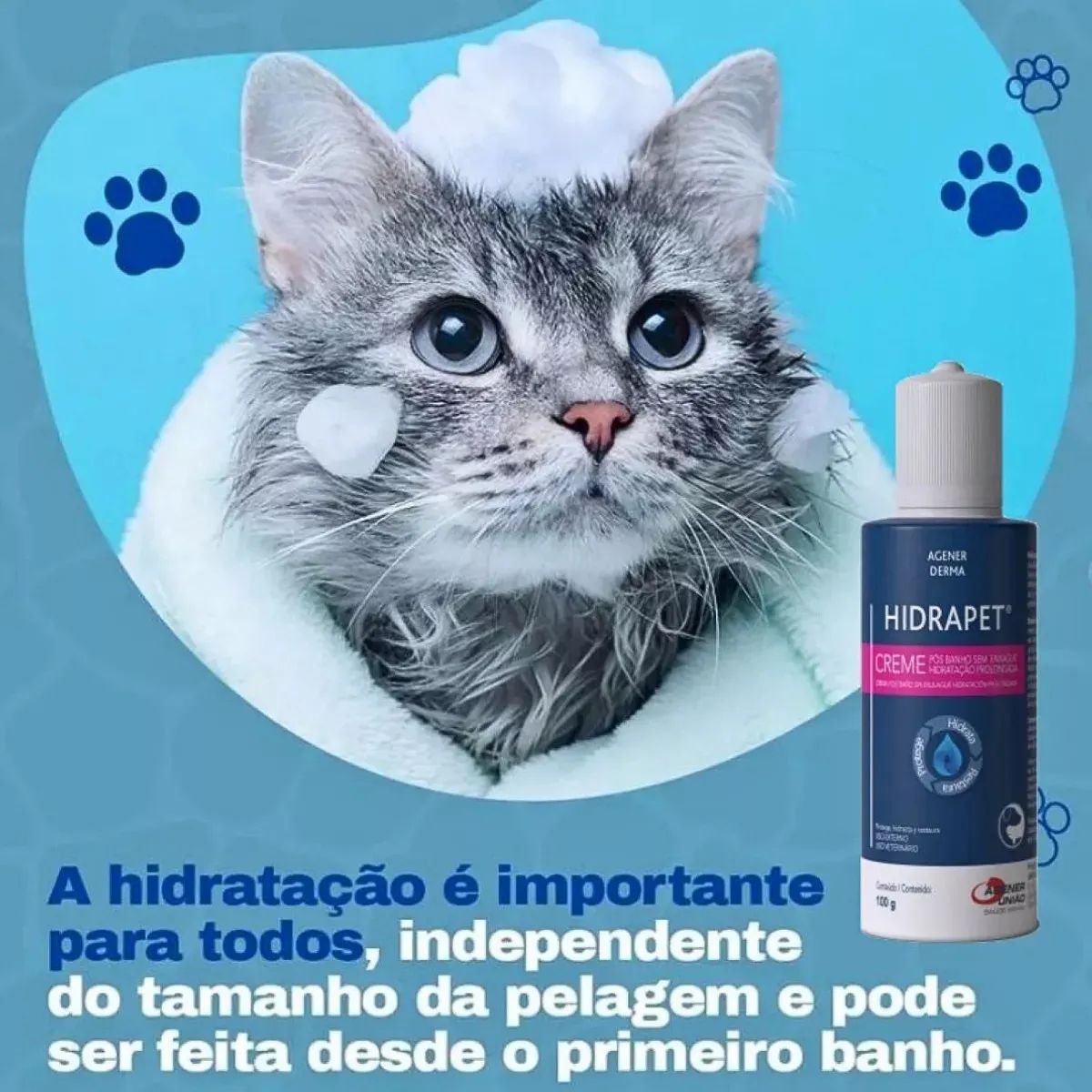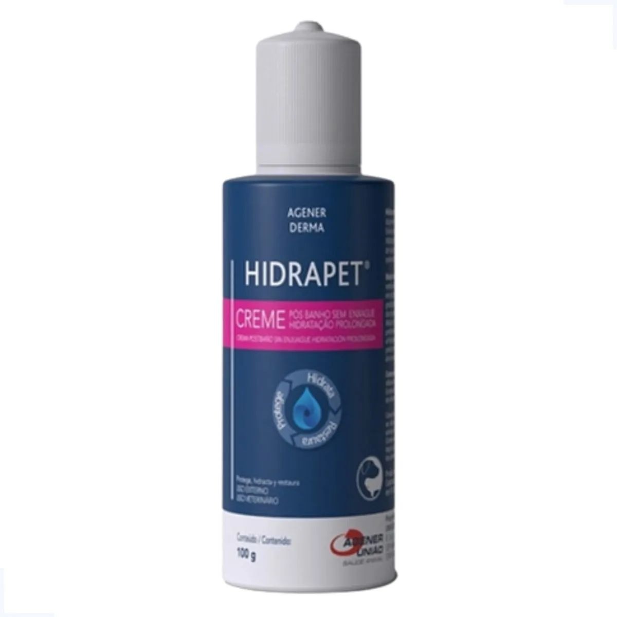 O Creme Hidratante Agener União Hidrapet é um creme pós-banho a base de óleo de macadâmia, ceramida e combinação de silicones, indicado para a hidratação da pele e dos pelos de cães e gatos. Proporciona aos pelos maciez, volume, brilho, resistência e vigor. Facilidade de desembaraço.
