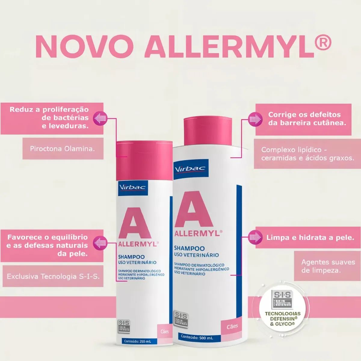 Se o seu cão sofre com pele sensível, alergias, coceira ou irritações, você encontrou a solução definitiva. O Shampoo Allermyl é uma fórmula terapêutica desenvolvida pela Virbac, líder mundial em saúde animal, especialmente para trazer alívio e restaurar a saúde da pele do seu melhor amigo.