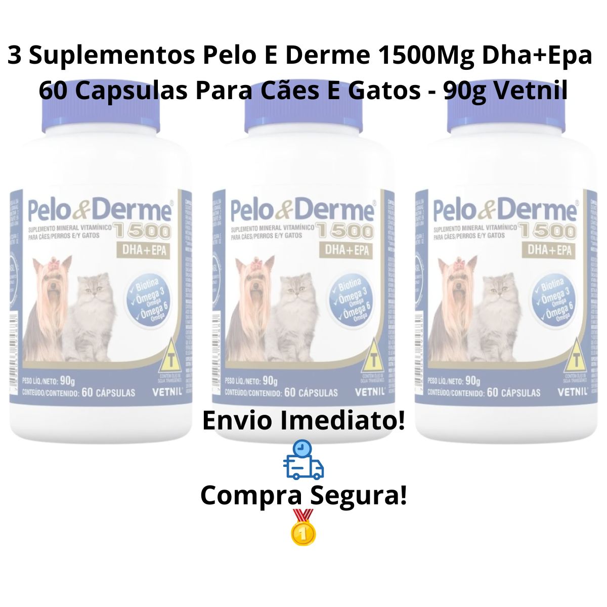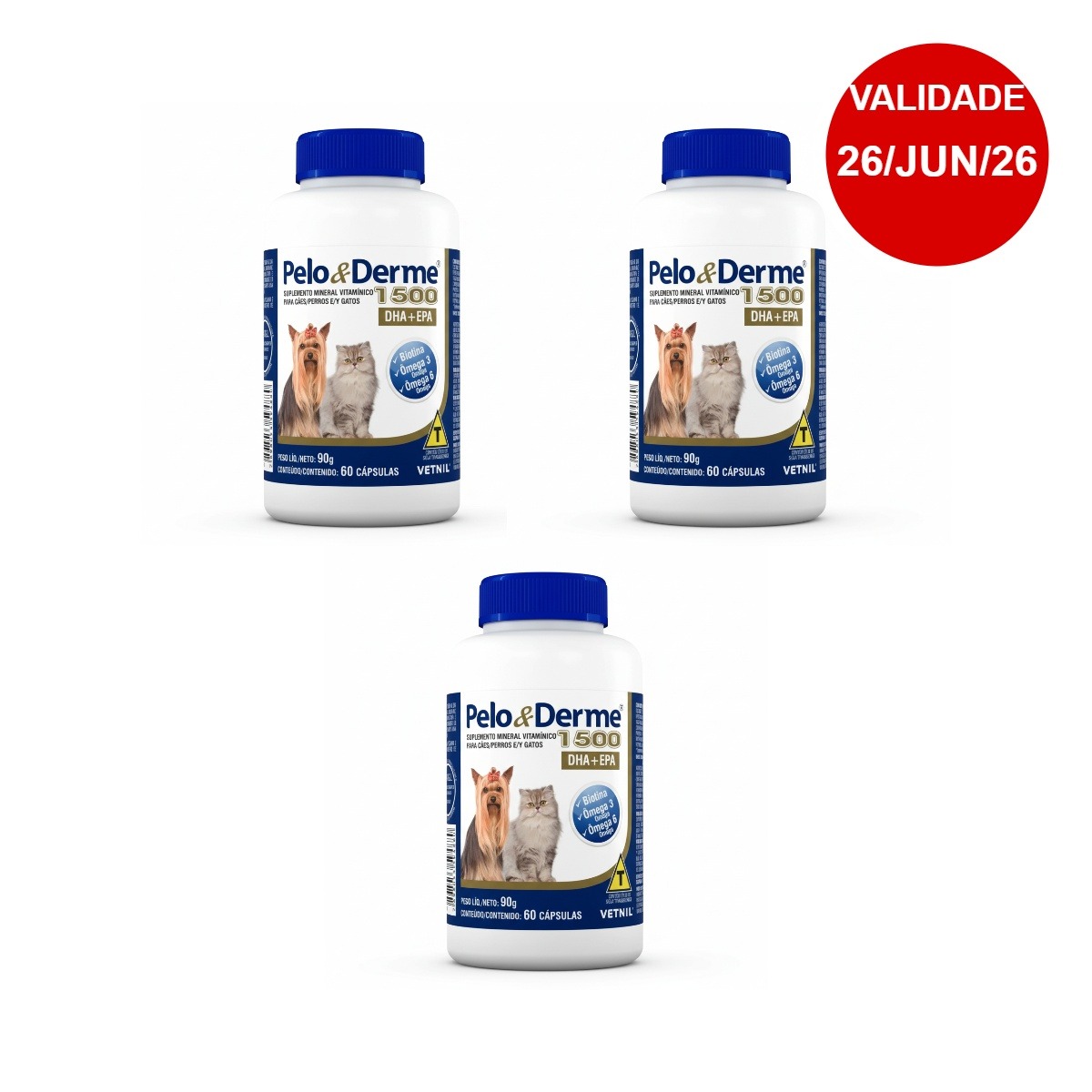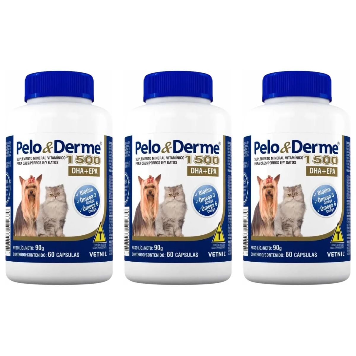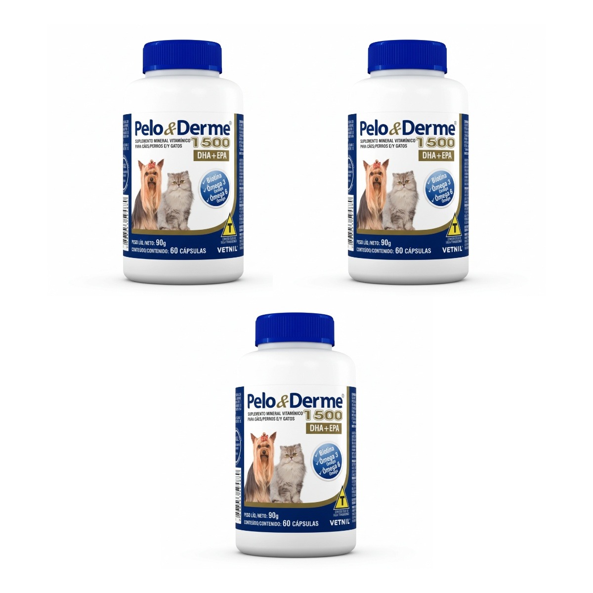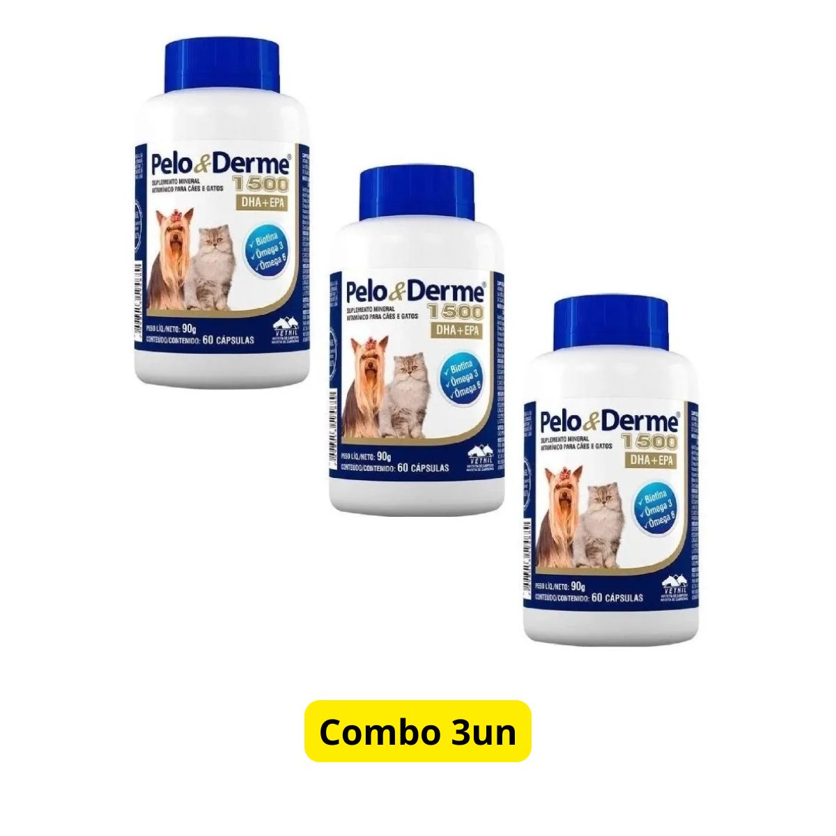 3 Unidades PELO E DERME 1500 – 60 CÁPSULAS VETNIL