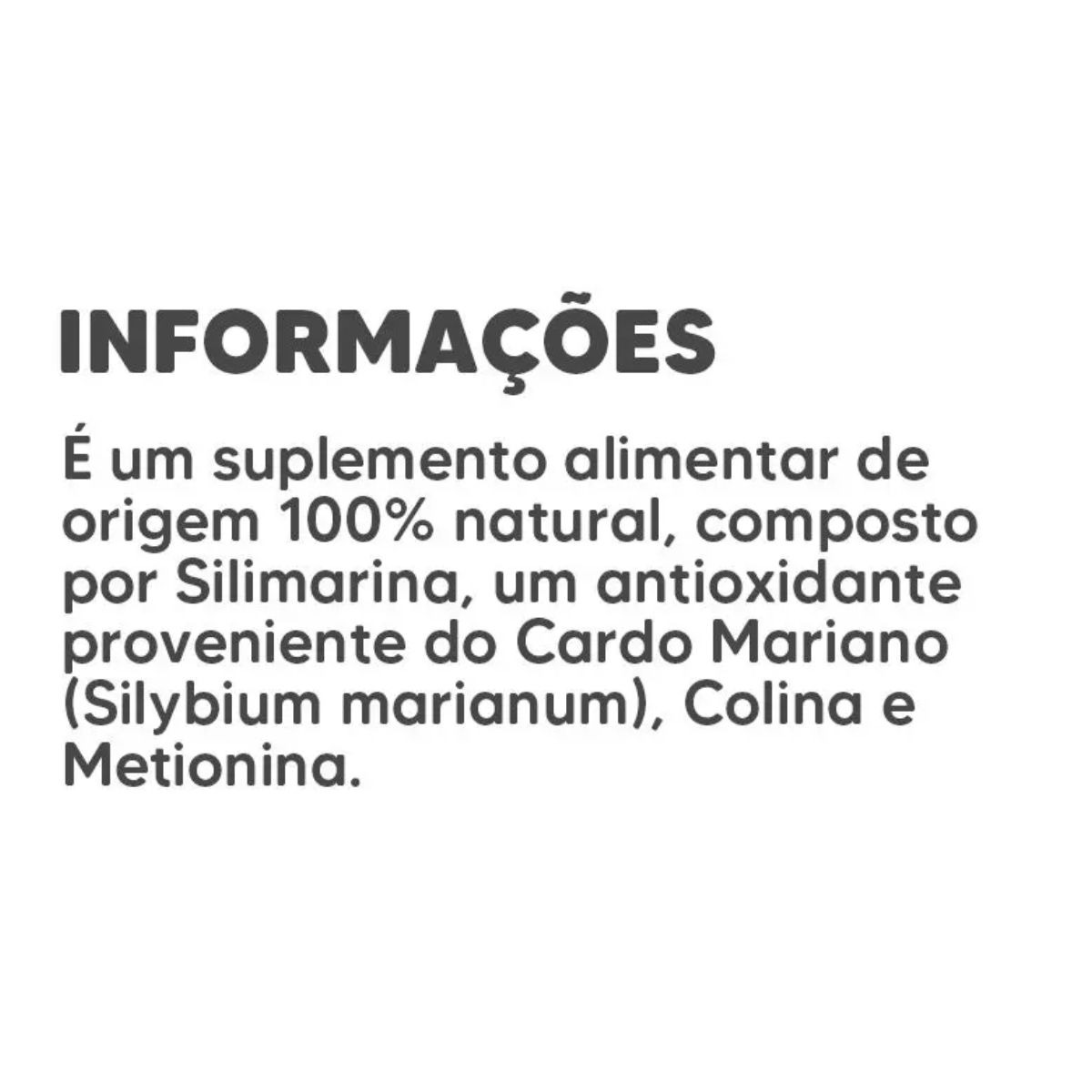 • Contém Extrato de Cardo Mariano (Silimarina), Colina e Metionina.