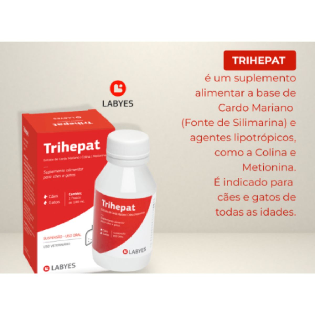 O Suplemento Alimentar Trihepat da Labyes é a solução ideal para proteger e regenerar a saúde hepática de seus cães e gatos. Desenvolvido com uma fórmula avançada, este suplemento é um aliado poderoso no bem-estar e na vitalidade dos seus animais de estimação.
