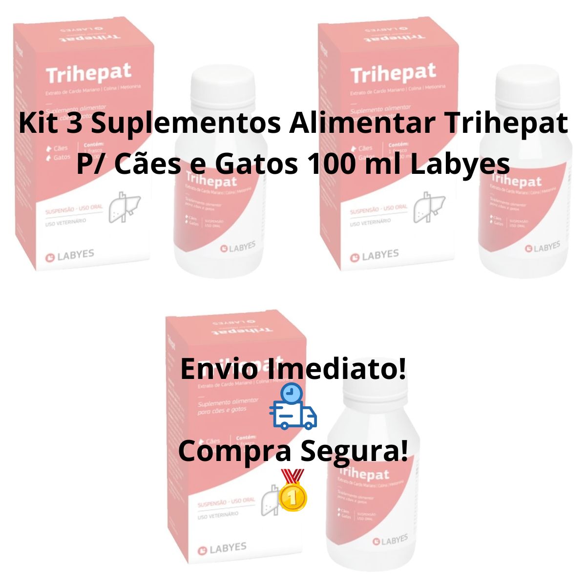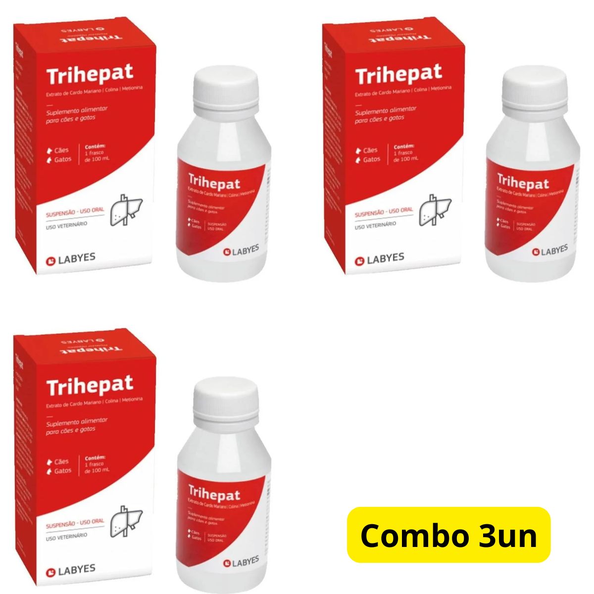 Grand Magasin Apresenta: Kit 3 Suplemento Alimentar Trihepat 100ml – Para Cães E Gatos – Labyes