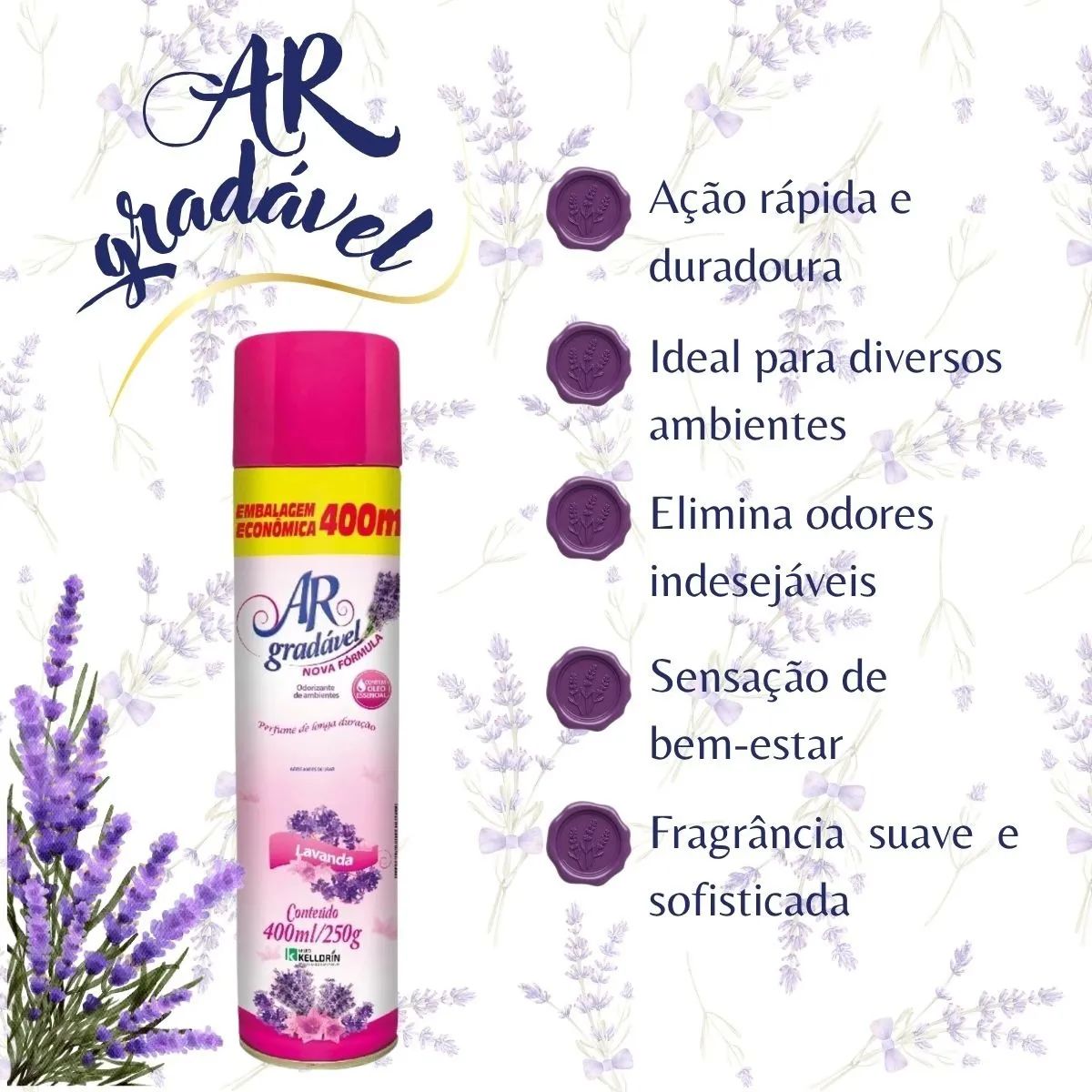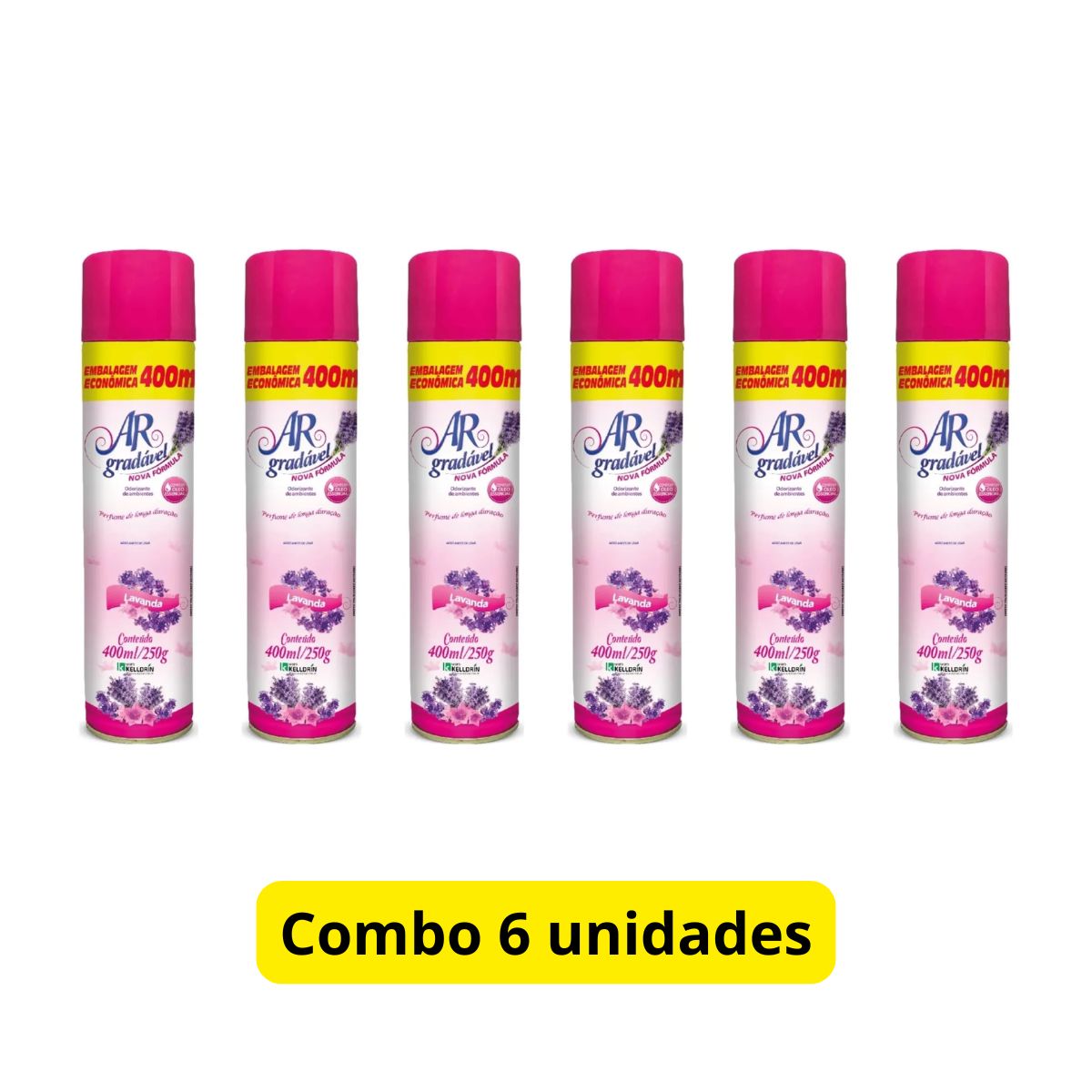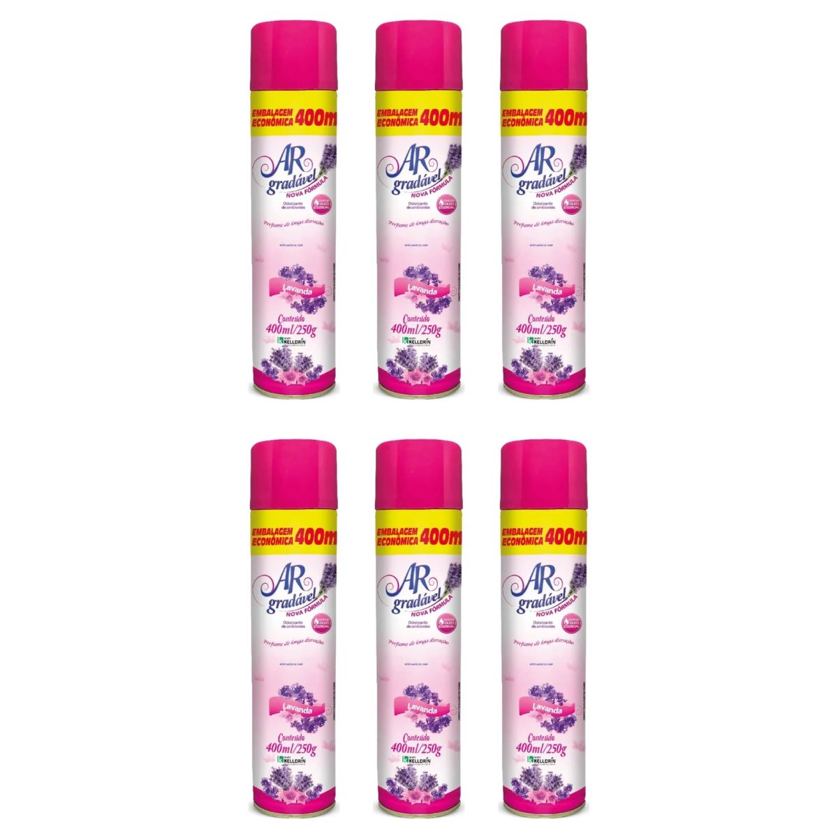 Kit 6 Ar Gradavel Neutralizador De Ambientes Lavanda – Kelldrin 400 Ml