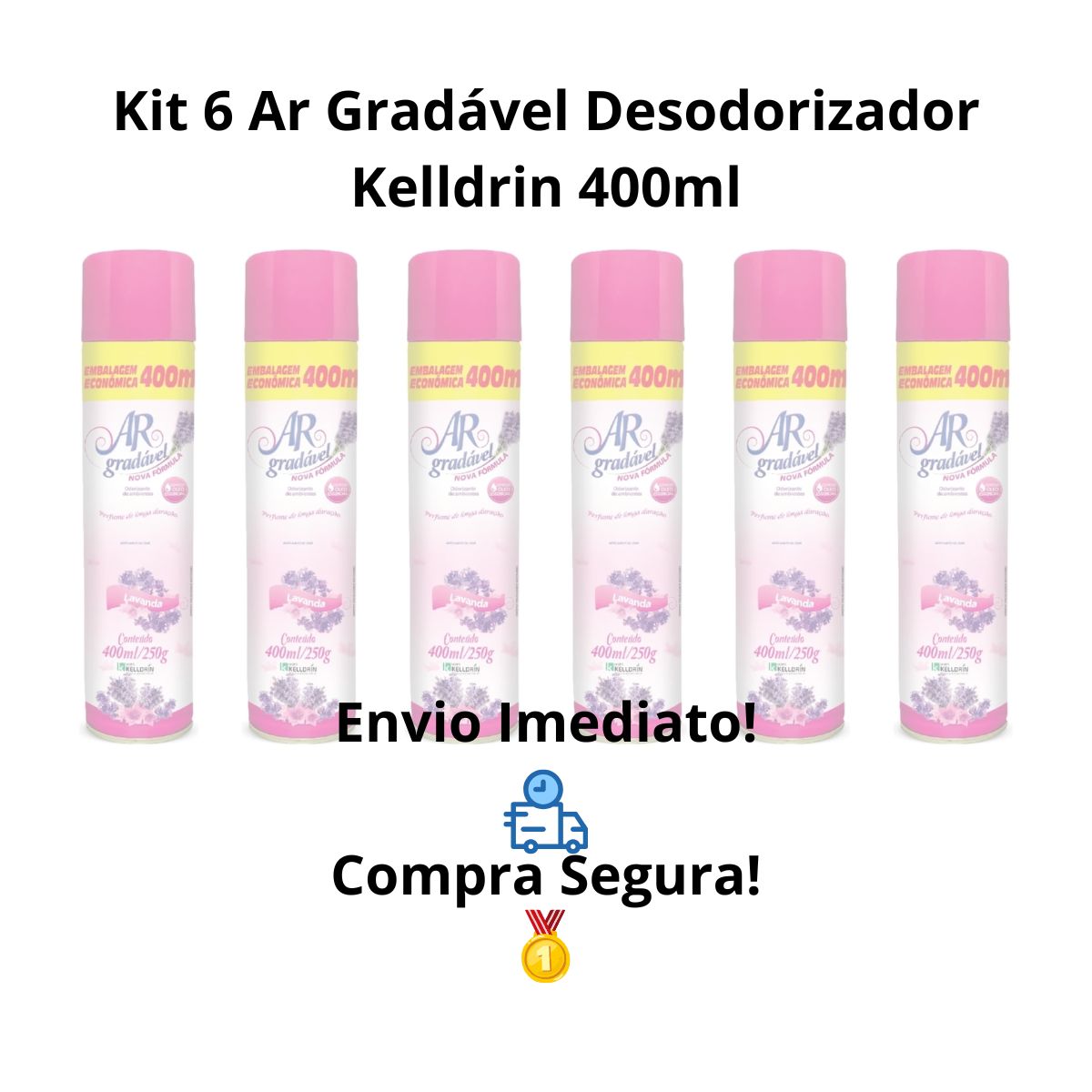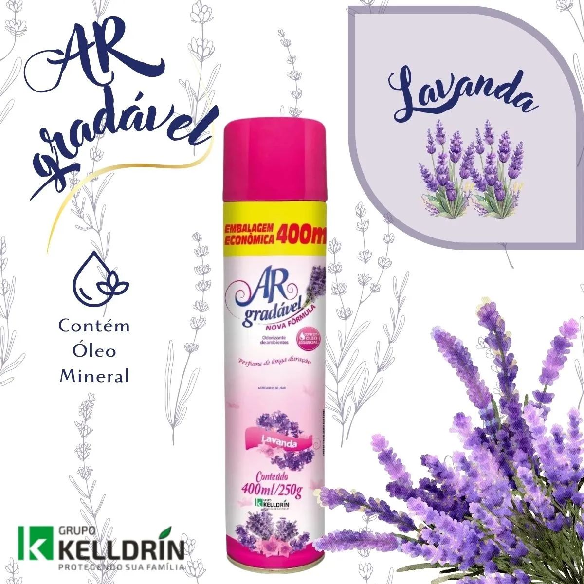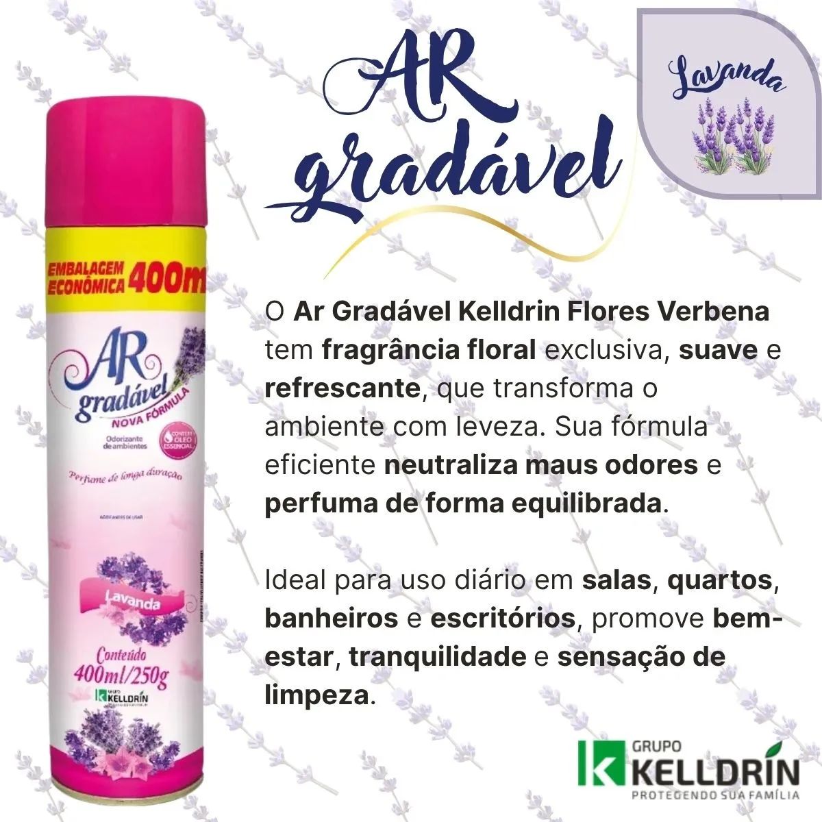 Kit 6 Ar Gradavel Neutralizador De Ambientes Lavanda – Kelldrin 400 Ml