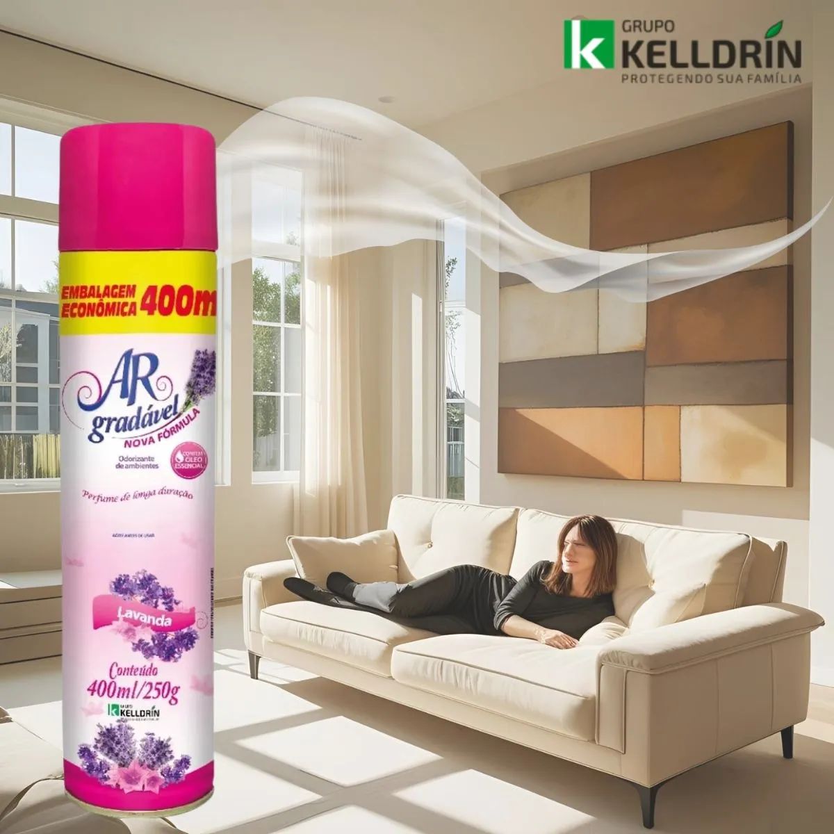 Redescubra o prazer de estar em casa com o Bom Ar Neutralizador de Ambientes Lavanda da Kelldrin – a escolha ideal para quem valoriza frescor, qualidade e bem-estar.