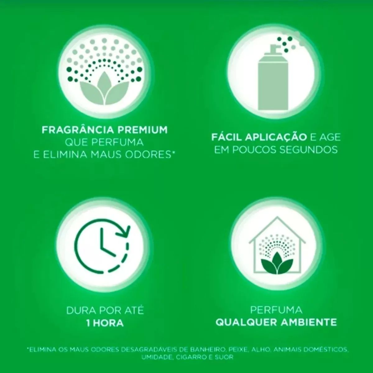 Neutraliza odores rapidamente: A tecnologia de neutralização age diretamente nos maus odores, tornando o ambiente mais agradável e convidativo.