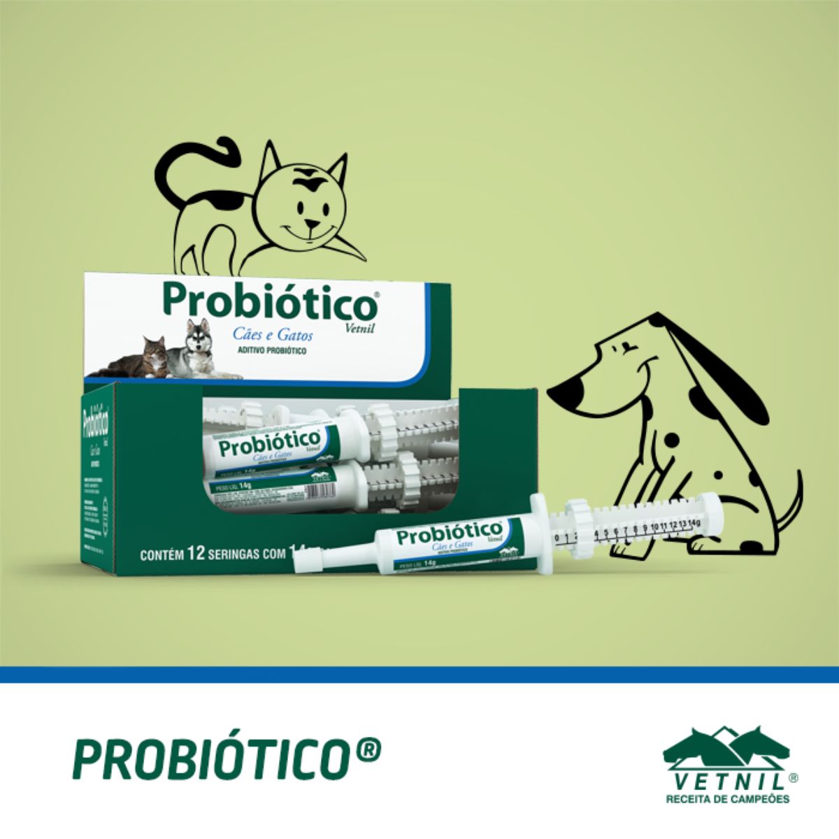 O Probiotico Vetnil e um suplemento alimentar de alta qualidade desenvolvido pela Vetnil, referencia no mercado veterinario brasileiro ha mais de 25 anos. Este aditivo probiotico em pasta foi especialmente formulado para auxiliar na regulacao da microbiota intestinal de caes e gatos, promovendo uma saude digestiva completa para seu pet.