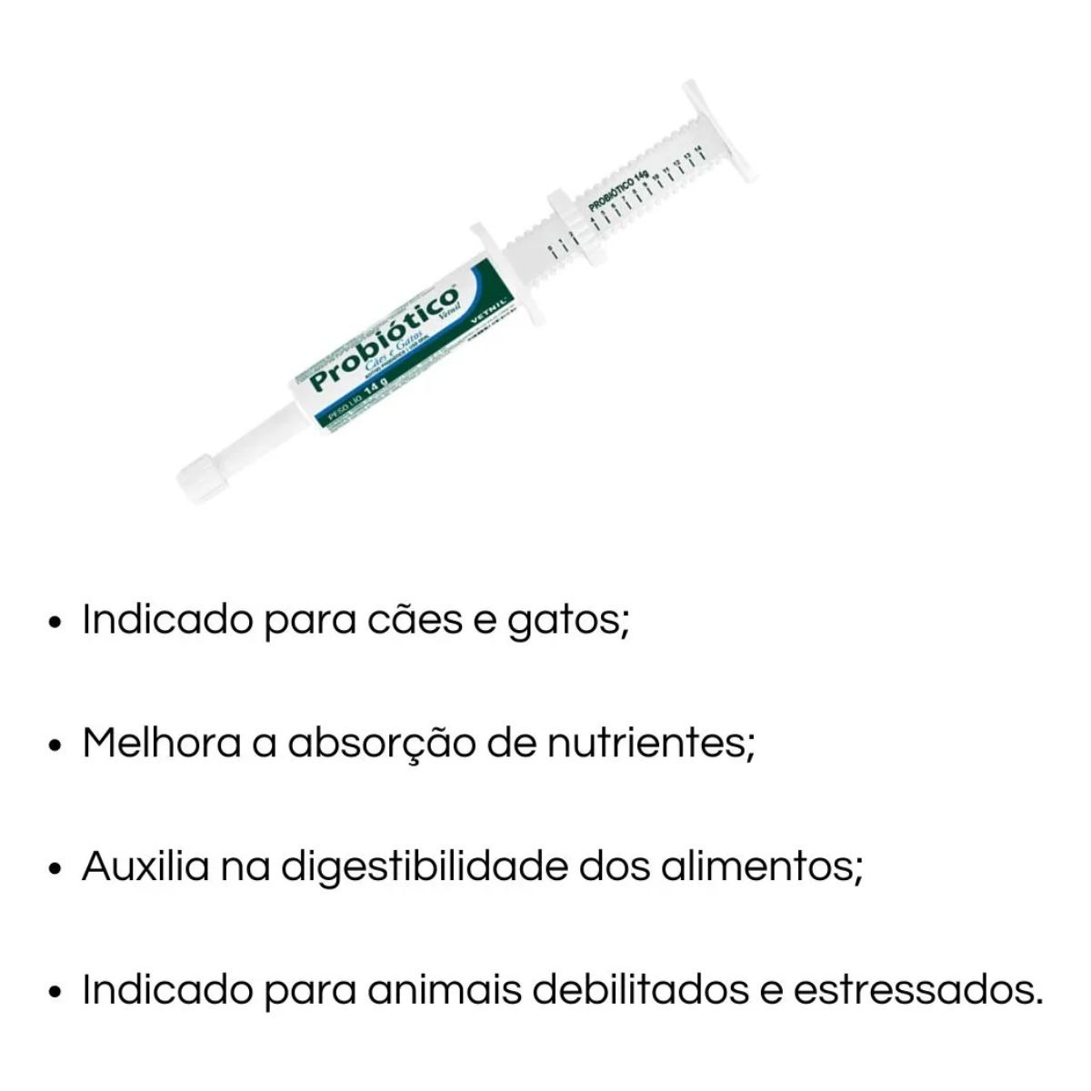 Administracao Simples e Pratica Aplique o probiotico diretamente na boca do animal ou misture na racao. A textura em pasta facilita a aceitacao e garante que seu pet receba a dose completa.