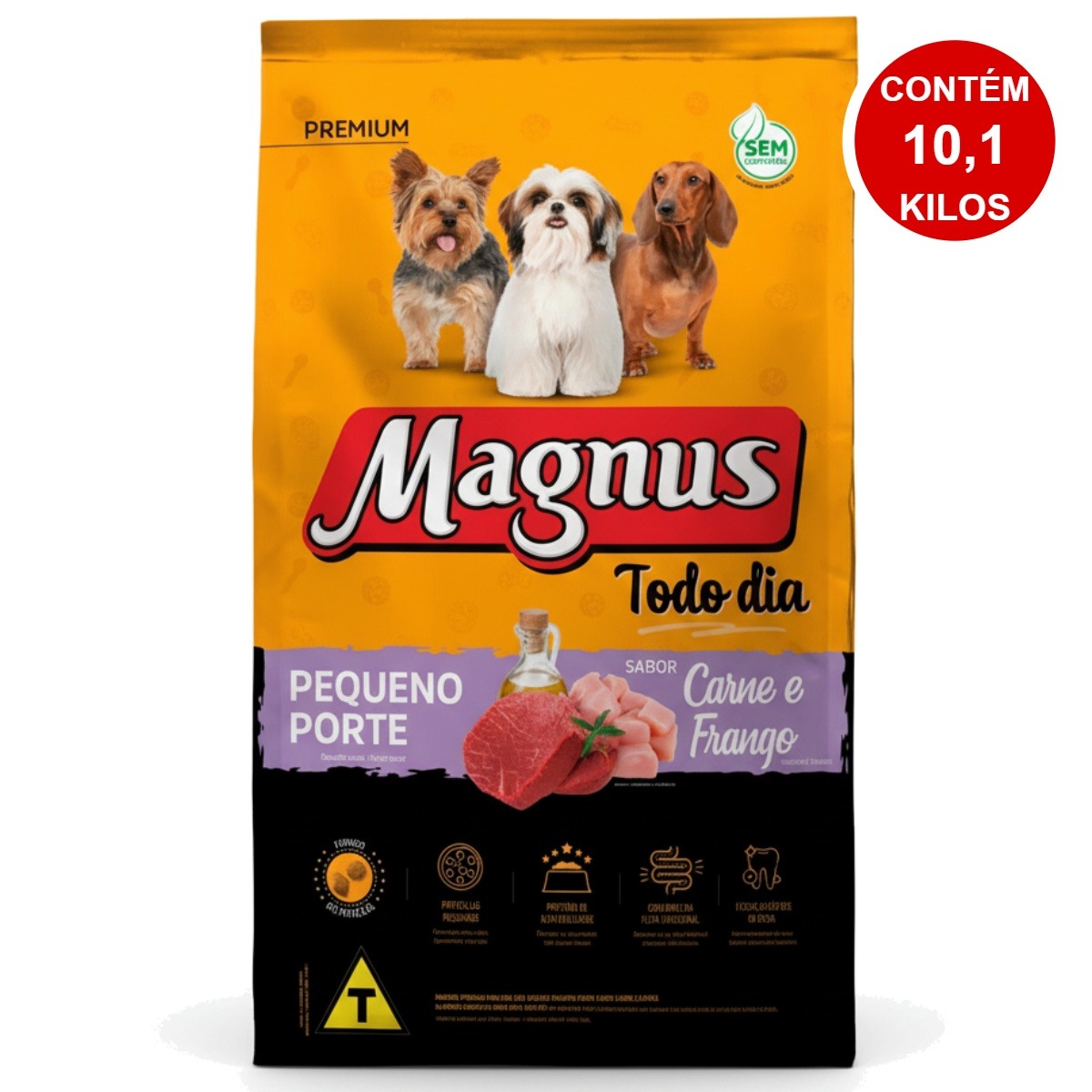 RAÇÃO MAGNUS TODO DIA PARA CÃES ADULTOS DE PEQUENO PORTE SABOR CARNE COM FRANGO 10,1KG