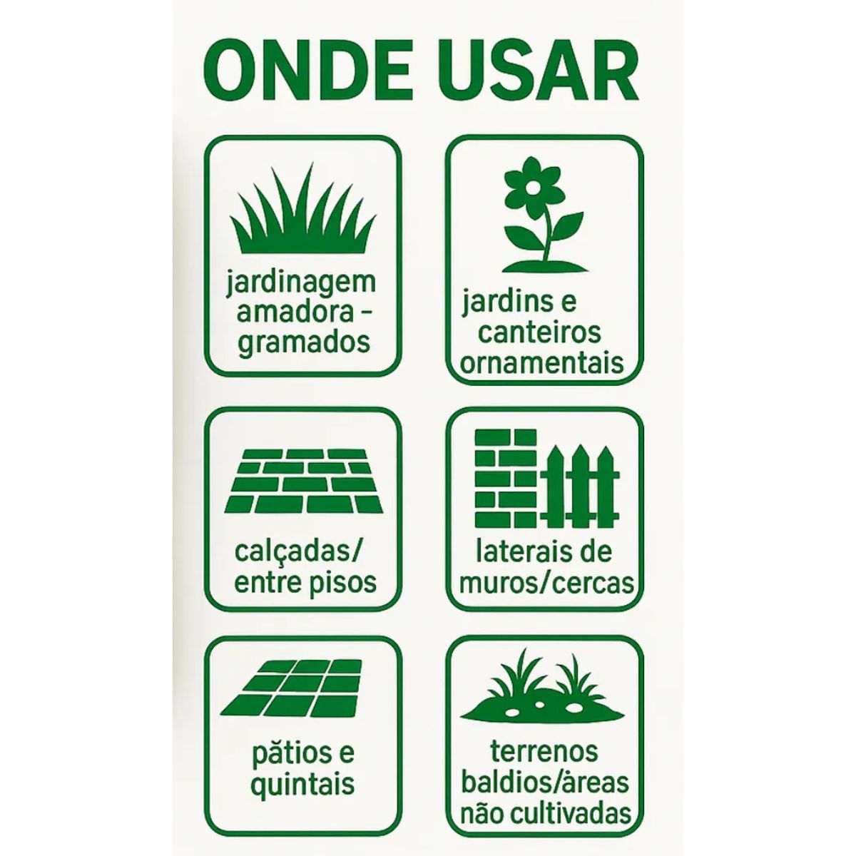 Praticidade Total: Produto já vem pronto para uso. Basta aplicar diretamente sobre as plantas daninhas.