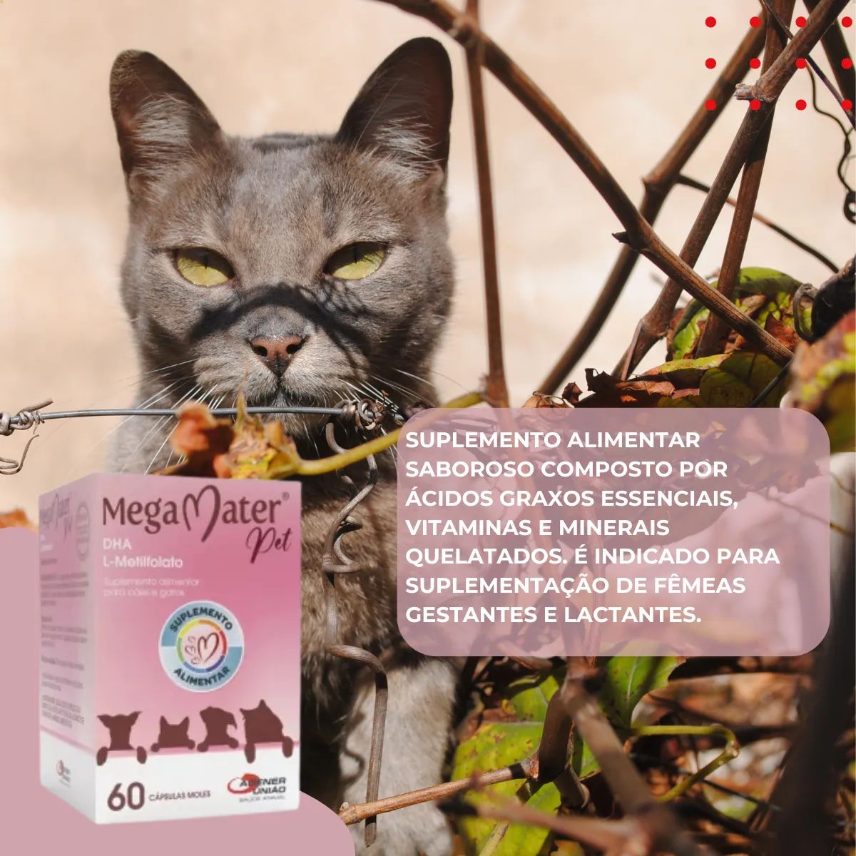 Com 60 cápsulas por embalagem, o Mega Mater Pet oferece suplementação completa de ácidos graxos ômega-3, vitaminas e antioxidantes que seu pet precisa para uma vida mais saudável e longeva.