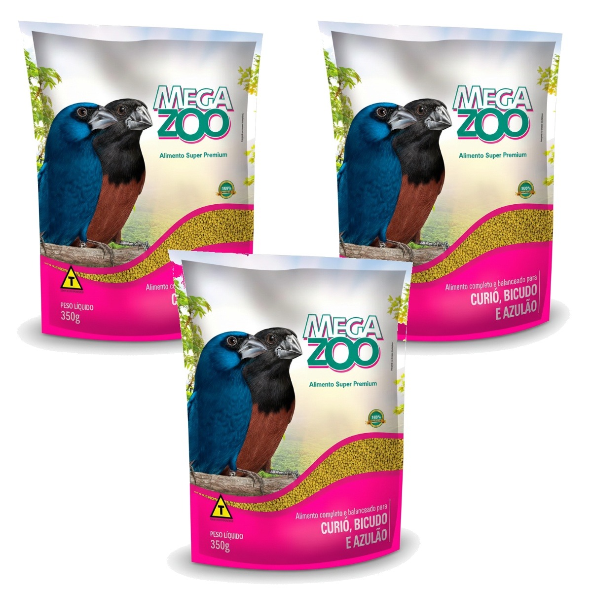 3 Unidades RAÇÃO EXTRUSADA PARA CURIÓ, BICUDO E AZULÃO MEGAZOO – 350g