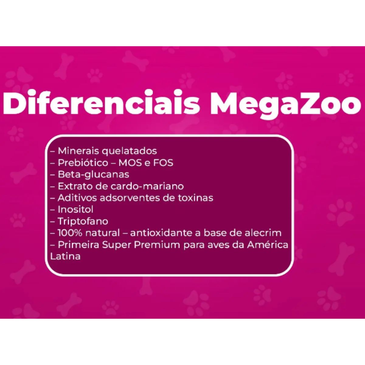 • Fabricado pela Megazoo – lider em nutricao aviaria Super Premium