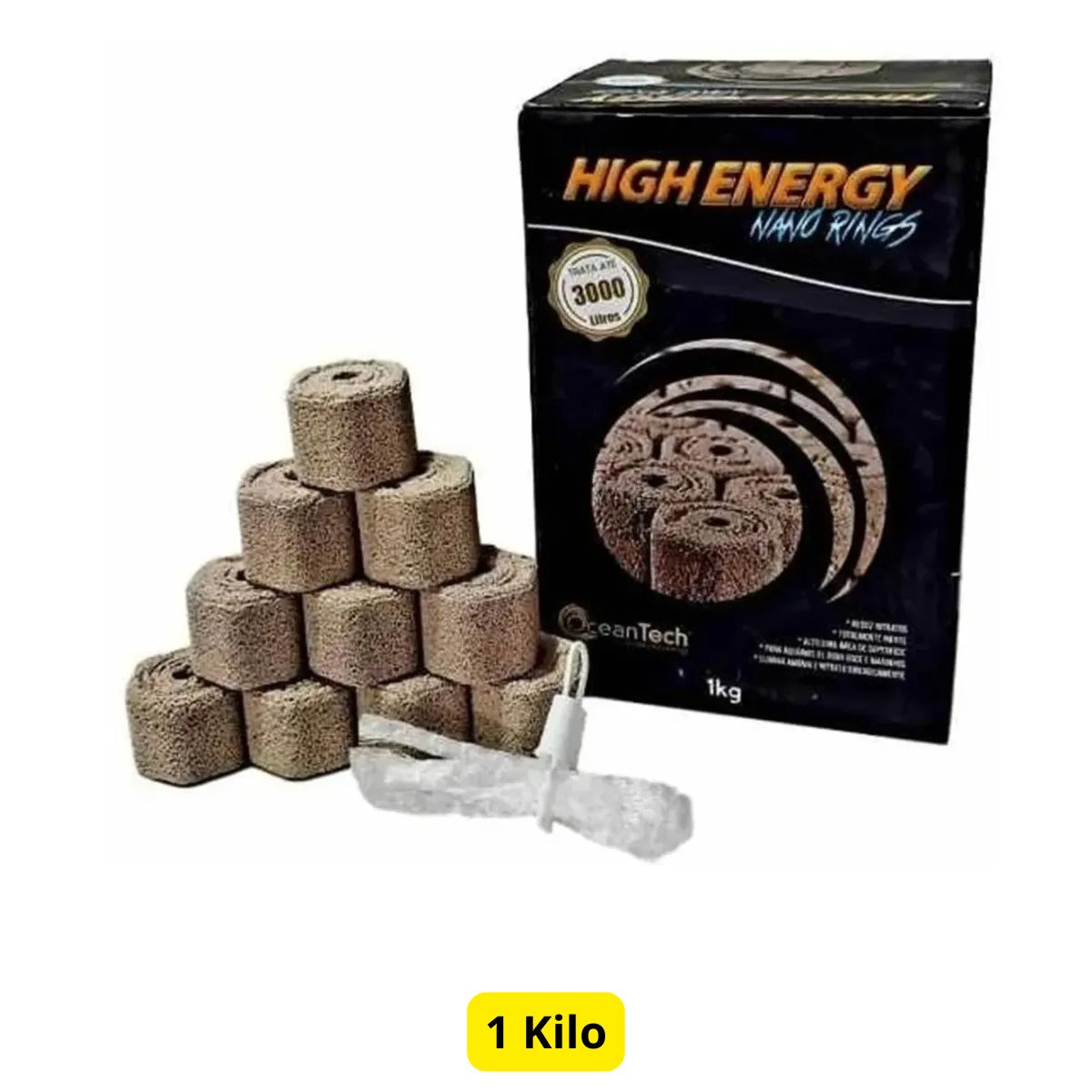High Energy Nano Rings da Ocean Tech é produzida a partir de microesferas cerâmicas tridimensionais, uma tecnologia que proporciona uma área de superfície para a colonização de bactérias benéficas até 10 vezes maior do que outras mídias filtrantes. Essa capacidade superior assegura uma filtragem biológica eficiente, convertendo substâncias tóxicas como amônia e nitrito em nitrato, que é menos prejudicial.