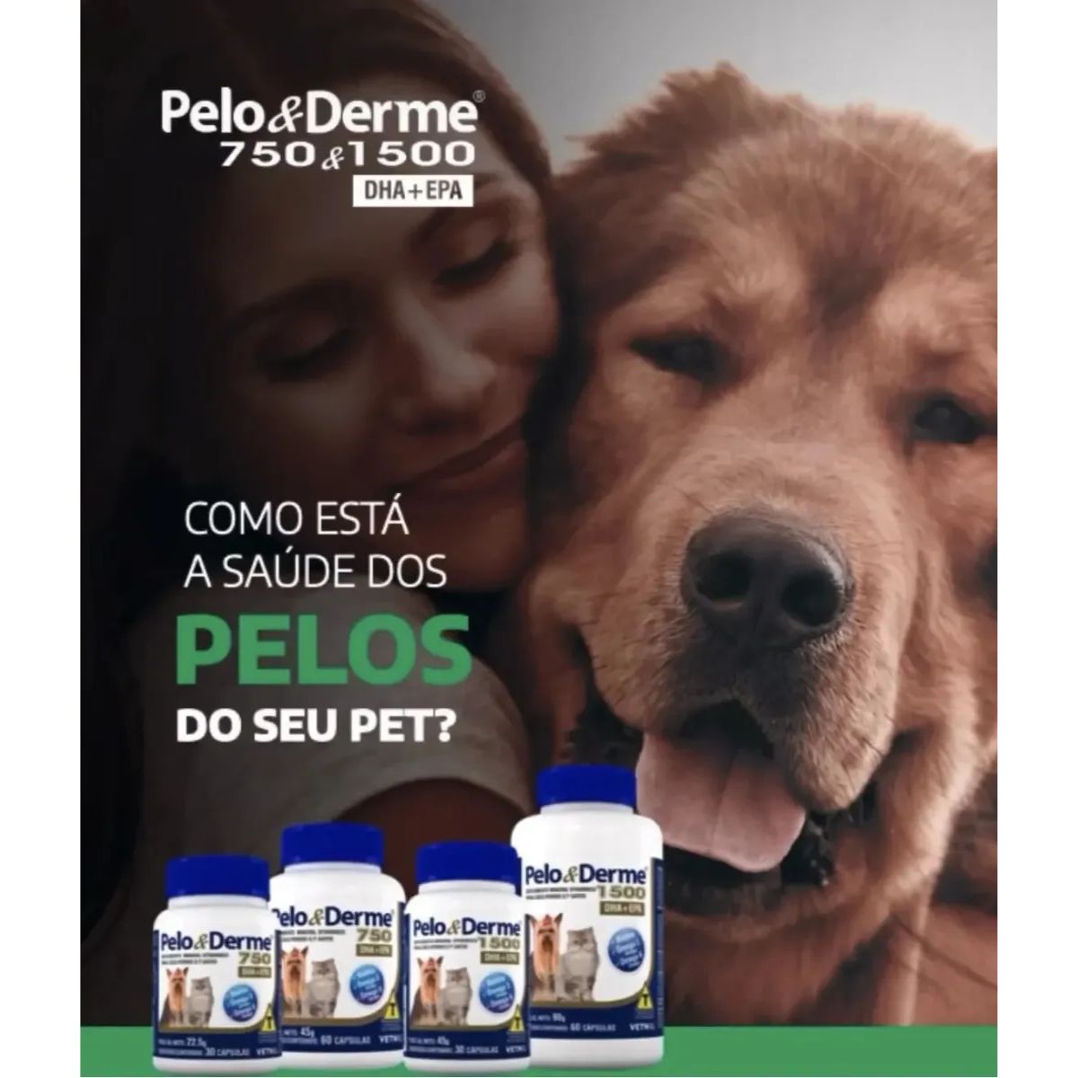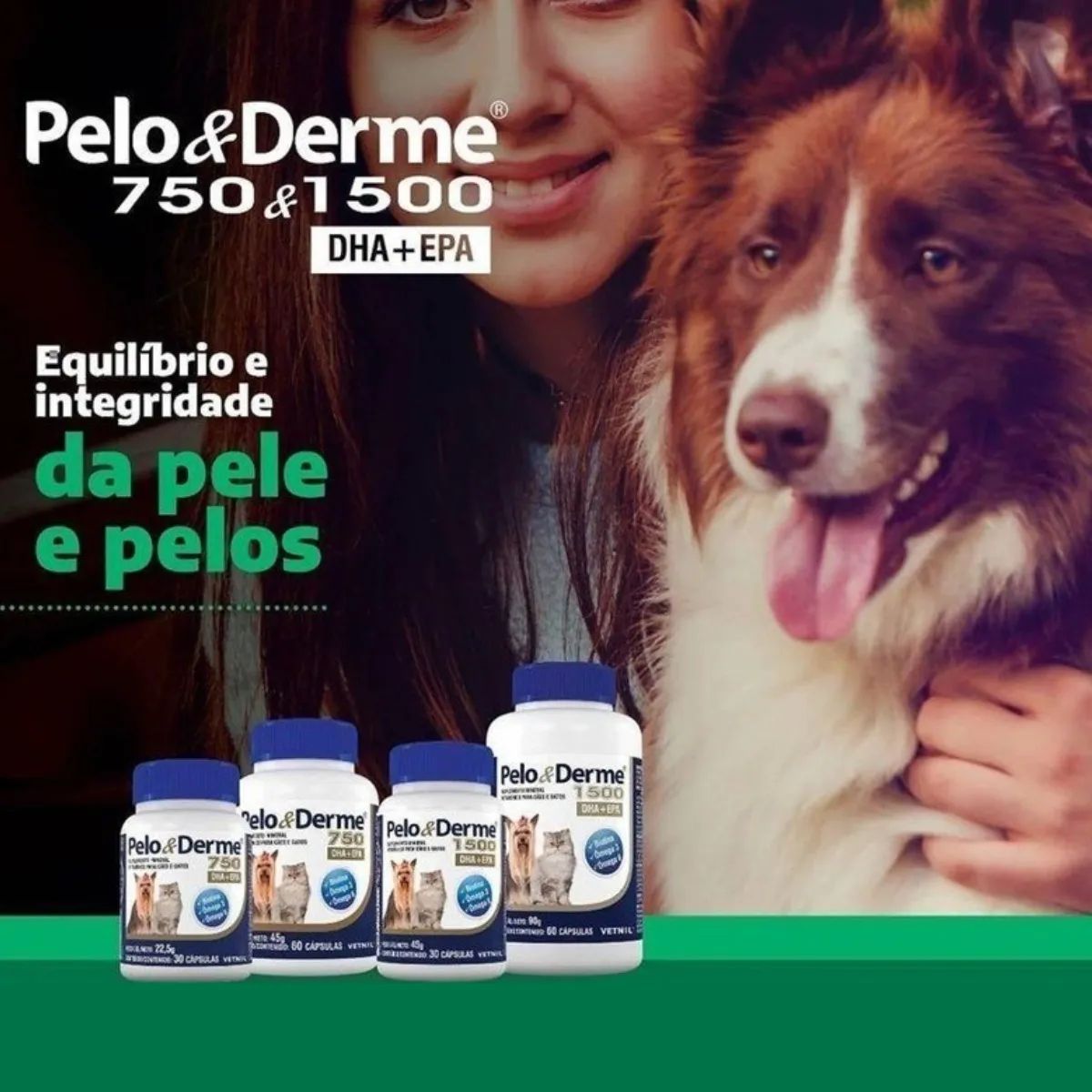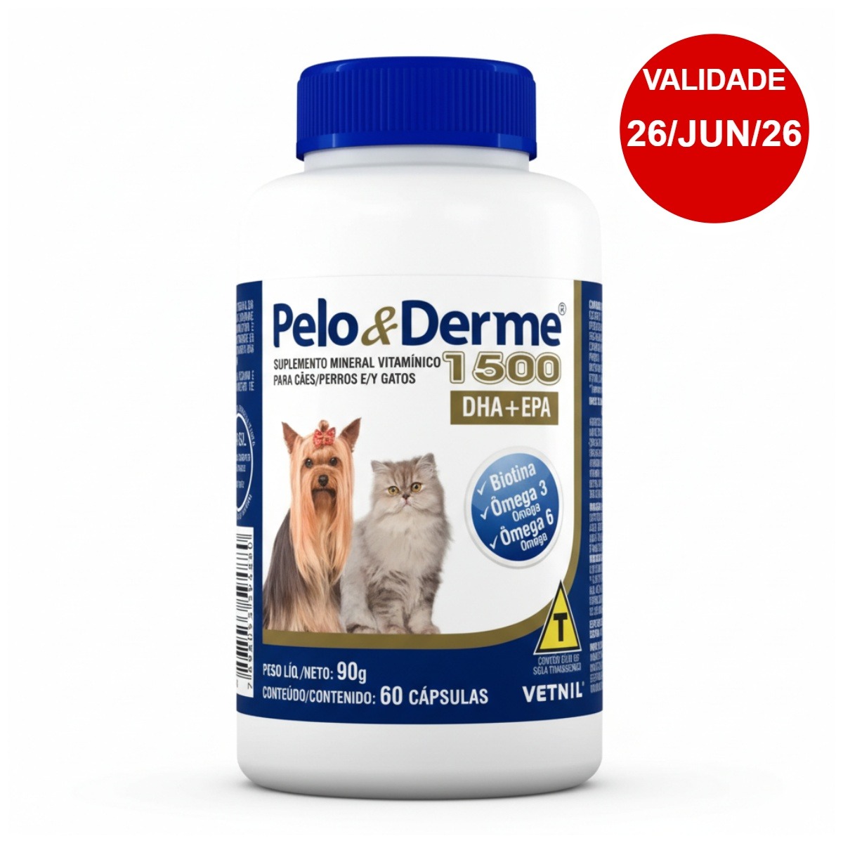 O Pelo e Derme 1500 é uma fórmula que contém ácidos graxos essenciais à dieta de cães e gatos, associados à Biotina, Zinco, Vitamina A e Vitamina E, elementos que, quando em conjunto, atuam mantendo ideais as características da pelagem e da pele.