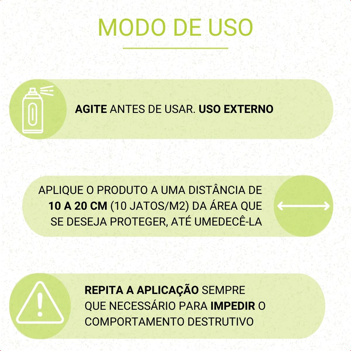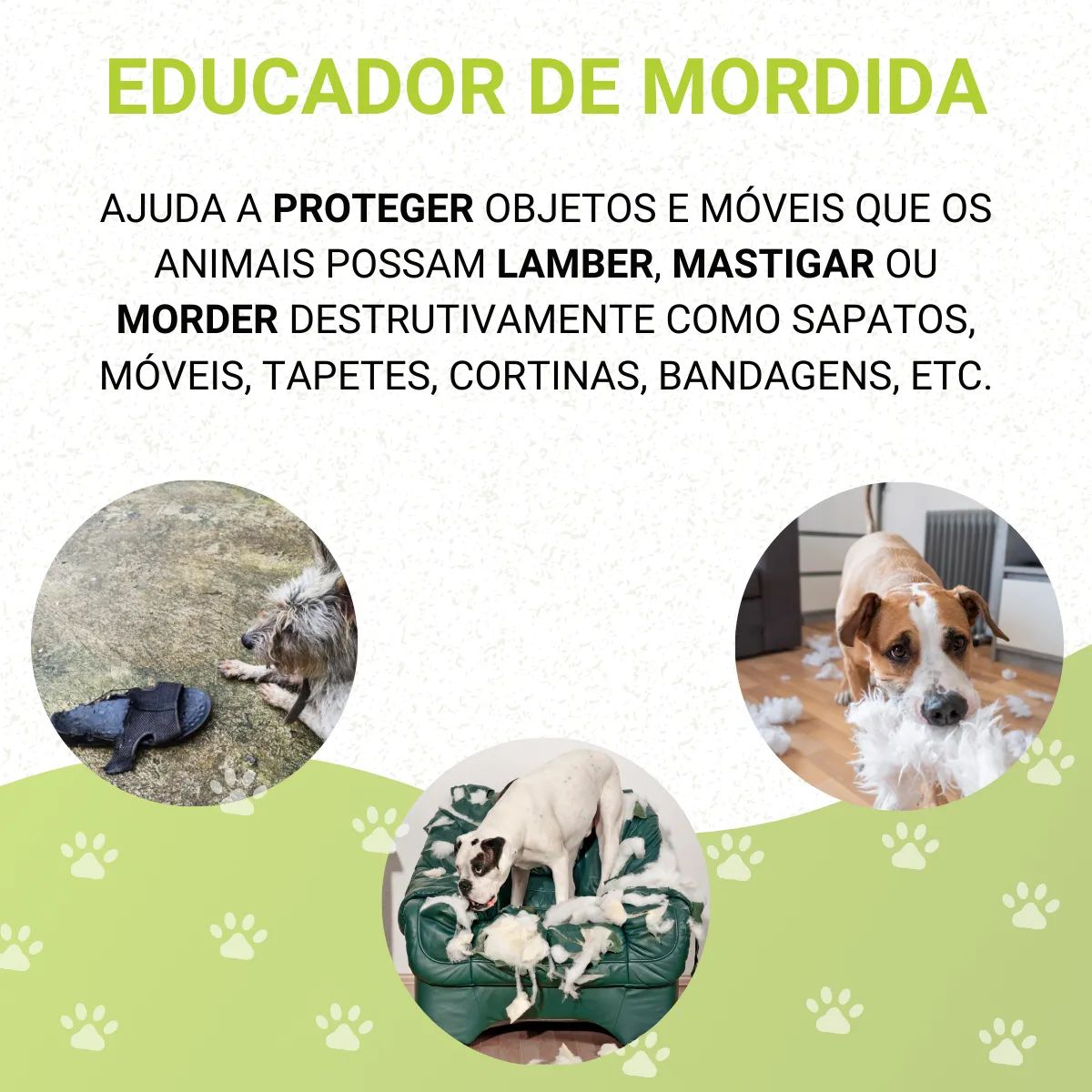 PROTEÇÃO IMEDIATA DOS SEUS BENS Aplique em móveis, rodapés, sapatos, fios, plantas, tapetes e qualquer objeto que seu pet insista em morder. A proteção começa na primeira aplicação.